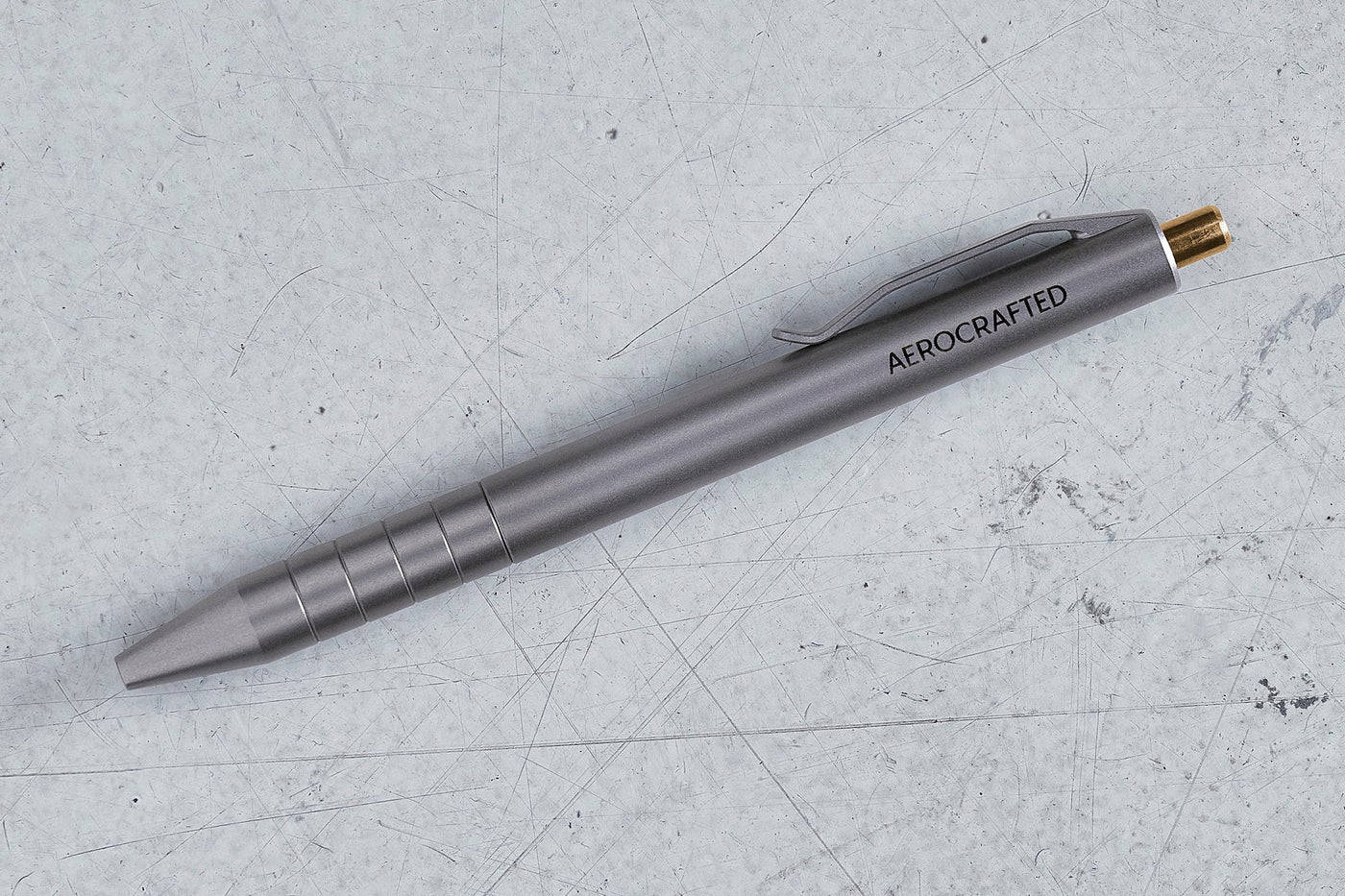 Als Luft- und Raumfahrtingenieure sowie Piloten wollte Aerocrafted einen Stift entwerfen, der sich einhändig im Flugzeug verwenden lässt – ohne Kappe, die im Cockpit verloren gehen könnte. Das Ergebnis: ein Klickstift aus Titan und Bronze mit einem völlig neuen, äußerst einfachen versetzten Umschaltmechanismus. Der Retract besteht aus nur einem beweglichen Teil und kommt ganz ohne Schraubverbindungen aus.