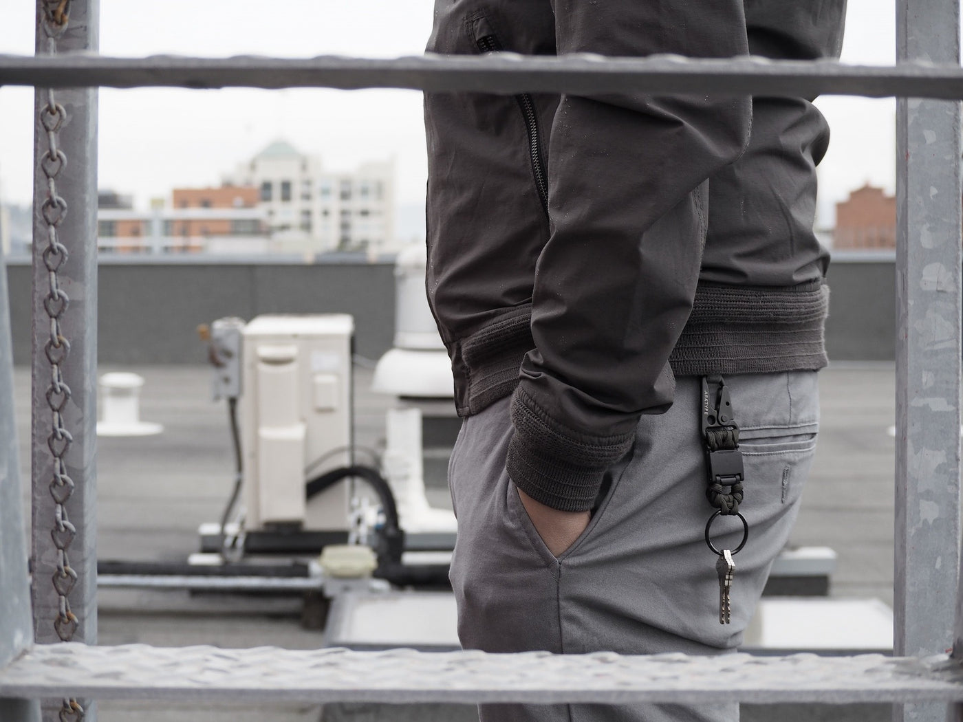 Der RMK ist mit einem schwarzen HK-Snap-Haken ausgestattet, der in Militärgewehren verwendet wird, und verankert sich sicher an deiner Gürtelschlaufe oder deinem Rucksackclip. Die Haken sind aus Edelstahl in den USA gestanzt und in Kalifornien lasergraviert. Der RMK ist perfekt dimensioniert, um außerhalb der Tasche zu hängen, aber lang genug, um bequem in der Tasche verstaut zu werden.