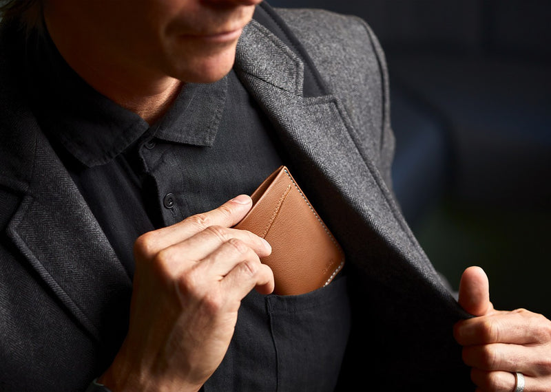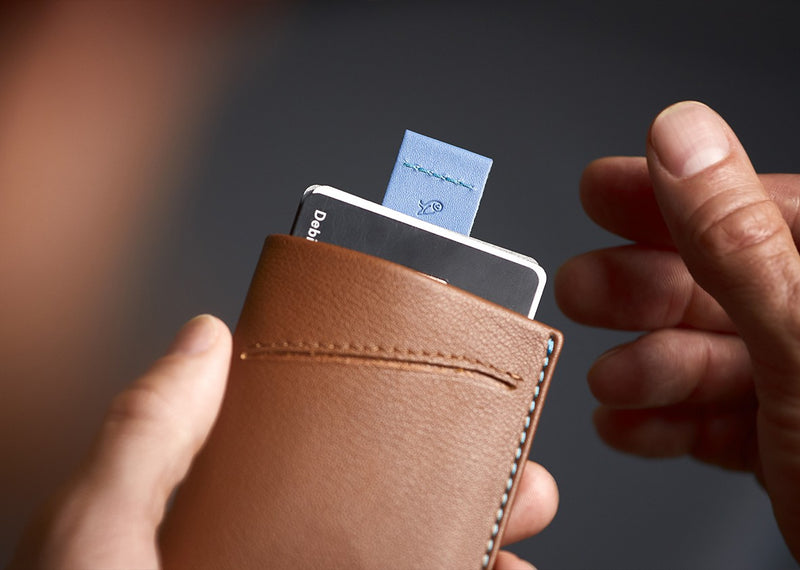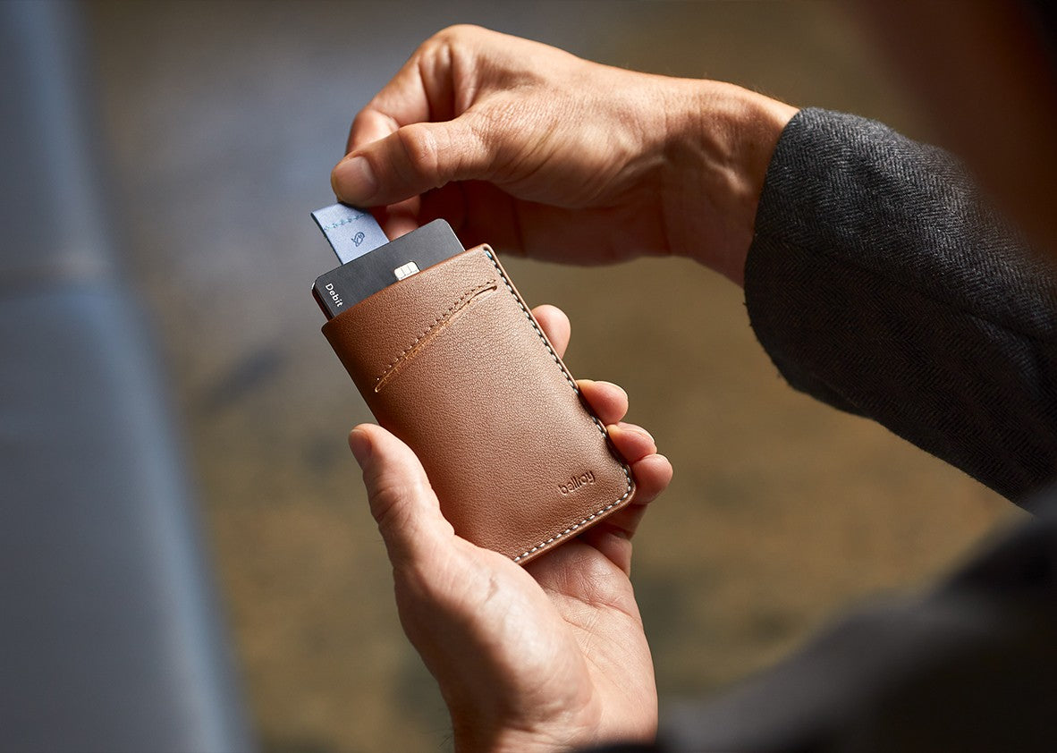 Zwei Schnellzugriffsfächer halten Ihre Hauptkarten griffbereit. Die restlichen Karten stapeln sich in der Mitte und sind mit einem Zug am Laschenzug erreichbar. Das Card Sleeve besteht nur aus Leder und Nähten – keine sperrigen Schichten oder Futter zu finden.