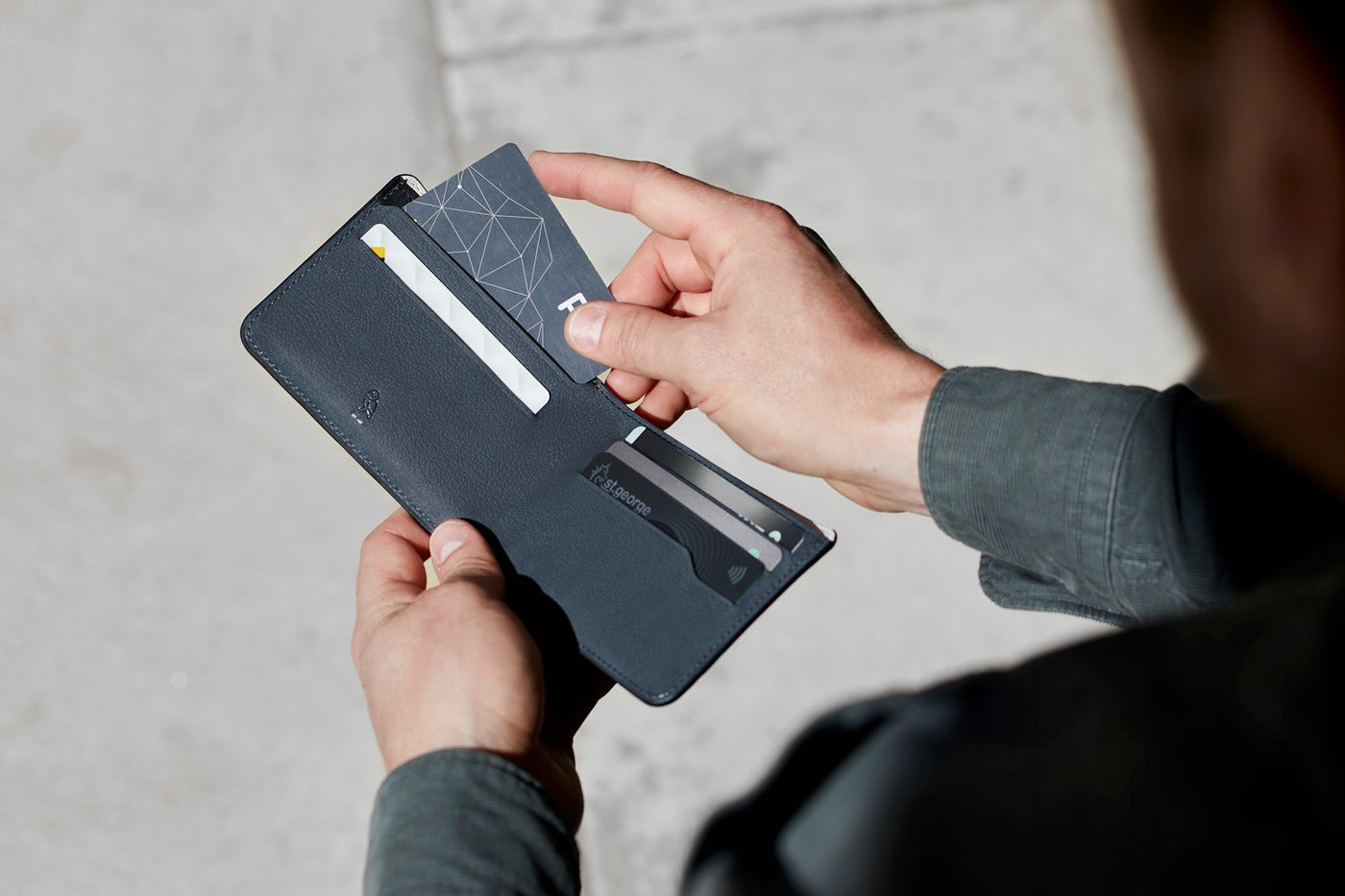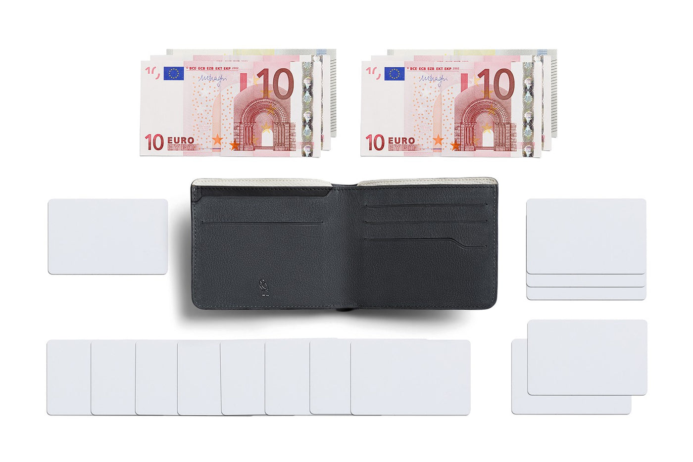 Eine clevere Klappe enthüllt ein verborgenes Fach für zusätzliche Geldscheine und ein schlankes Münzfach, die beide vor neugierigen Blicken geschützt sind. Zusätzliche Karten lassen sich leicht hinten stapeln, während Schnellzugriff-Fächer Ihre am häufigsten verwendeten Karten griffbereit halten.