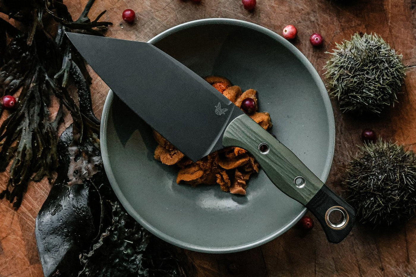 A minimalist workhorse, this ultra-versatile kitchen tool is built, designed, and manufactured to perform. From field to table, this one knife combines multiple types of cutting in one product and excels in tight cooking spaces. Benchmade's proprietary SelectEdge® technology allows for a cut like no other. Comes with an injection molded blade cover for convenient storage.