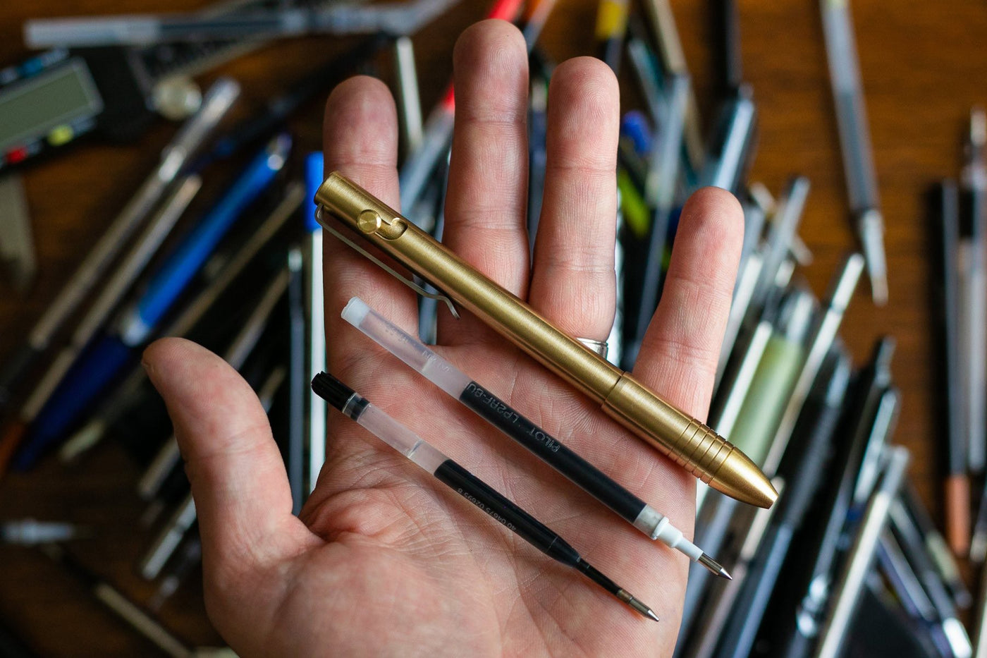 Der Brass Bolt Action Pen bietet dir volle Kontrolle über dein Schreiberlebnis. Er passt sich automatisch in Länge und Spitzenlänge an – für den wohl nachfüllfreundlichsten Bolt-Action-Stift überhaupt. Du kannst deine Lieblingsmine einfach einsetzen, ganz ohne Kürzen, Basteln, Abstandshalter oder andere Anpassungen. Der Deep-Carry-Clip lässt sich mit nur einer Schraube umdrehen – damit du den Stift ganz nach deinem Geschmack nutzen kannst.