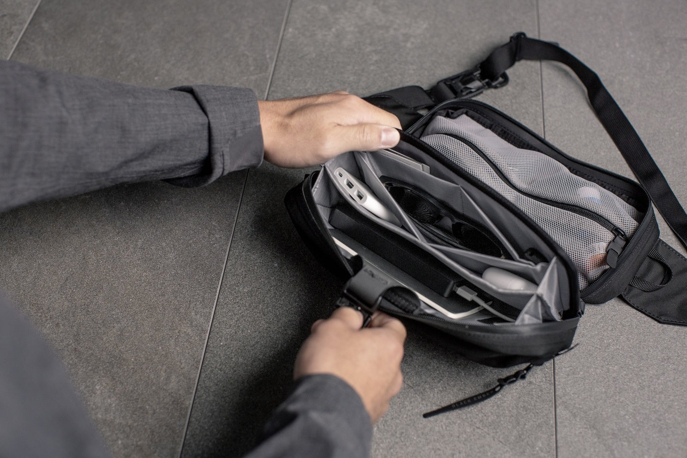 Eine wasserdichte Sling Bag, die gleichzeitig als Tech-Kit dient