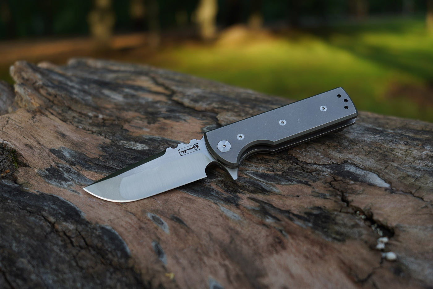 Der schädelförmige Taschenclip ist das Markenzeichen von Chaves, doch das Messer wird zusätzlich mit einem schlichten Standard-Titanclip geliefert, falls du etwas Minimalistischeres bevorzugst.