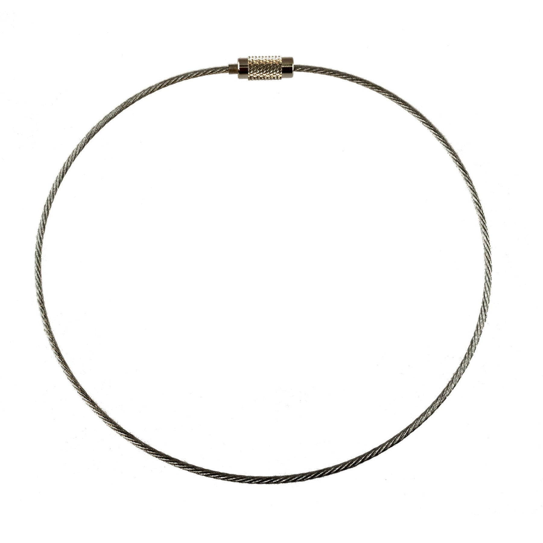 Bei einem Besuch an ihrem lokalen Flughafen fiel CC auf, dass alle A&P (Air Frame & Power Plant) Mechaniker diese praktischen Ringe trugen, um ihre Schlüssel und kleinen Werkzeuge organisiert zu halten. Also ließen sie welche anfertigen. Sie bestehen aus Edelstahl-Flughafenkabel mit Messingschrauben und -hülsen. Glatte Oberfläche und dickes, robustes Kabel unter der Poly-Nylon-Verstärkung.