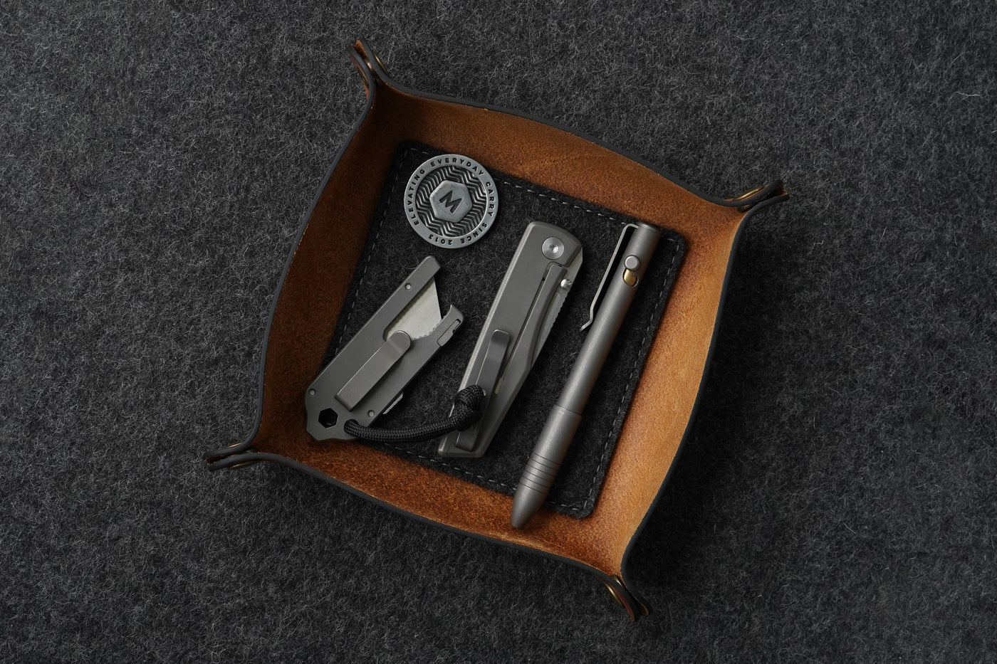 Das Valet Tray ist eine elegante und zuverlässige Möglichkeit, Ihre Gegenstände zu organisieren. Handgefertigt im Crazy Horse Craft Studio aus natürlichem, hochwertigem pflanzlich gegerbtem italienischem Leder, bietet es überlegene Handwerkskunst und ein stilvolles Erscheinungsbild. Die Unterseite aus Wollfilz bietet Fleckenresistenz, Wasserbeständigkeit und antibakterielle Eigenschaften.