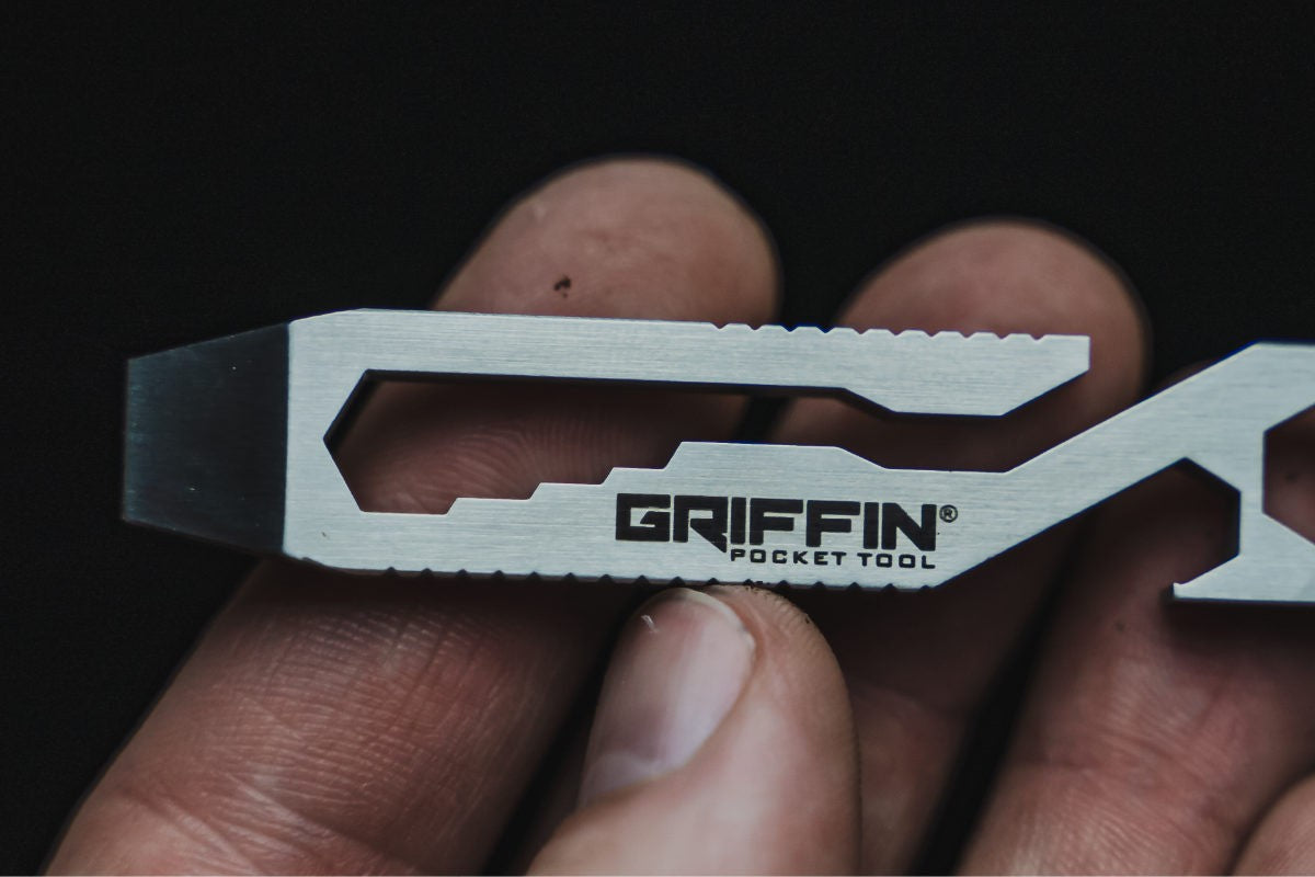 Das Griffin Pocket Tool® vereint über 12 Werkzeuge in einem schlanken Design, das deine Taschen nicht unnötig beschwert. Es dient als Kartonöffner, Schlitzschraubendreher, Ritzwerkzeug, Bithalter und Hebelwerkzeug. Zusätzlich bietet es vier Maulschlüssel in den Größen 4 bis 7 Millimeter. Ein tiefer Taschenclip sorgt dafür, dass deine Schlüssel sicher befestigt und jederzeit griffbereit sind.