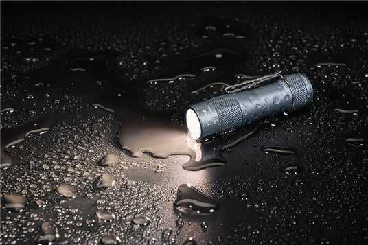 Das Design des hinteren Klickschalters ermöglicht eine aufrechte Standposition. Zudem verfügt die Taschenlampe über eine optionale magnetische Endkappe, mit der sie an Metallflächen befestigt werden kann. Zusätzlich bietet die Tool AA auch einen Drehkopfschalter für die Bedienung.