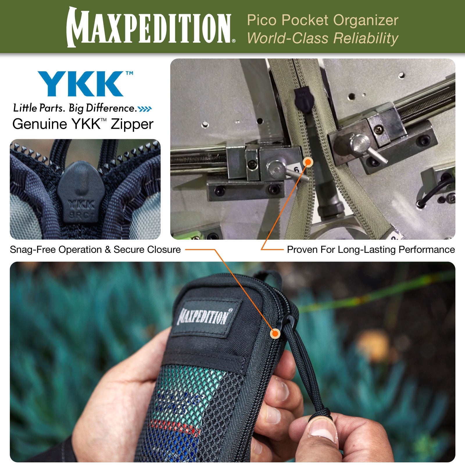 The Maxpedition Pico Pocket Organizer is an ultra compact EDC pouch made from rugged 500D ballistic nylon for excellent water and abrasion resistance.