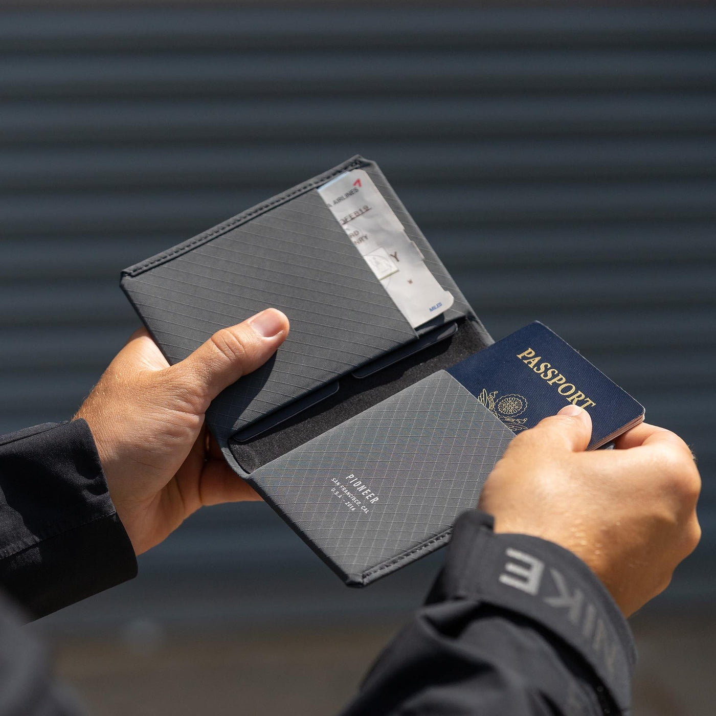 Die Passhülle verfügt über einen geformten Steckplatz für den Pass (125 x 88 mm, 28 Seiten) und zwei dezente Kartenfächer für einen sicheren Halt. Klein genug für Gesäßtaschen und optimiert für häufiges Reisen. Wasserdichtes Gewebe macht sie unverzichtbar für feuchte Reiseziele. Kombinieren Sie sie mit der Global Pouch, um das Reise-Set zu vervollständigen.