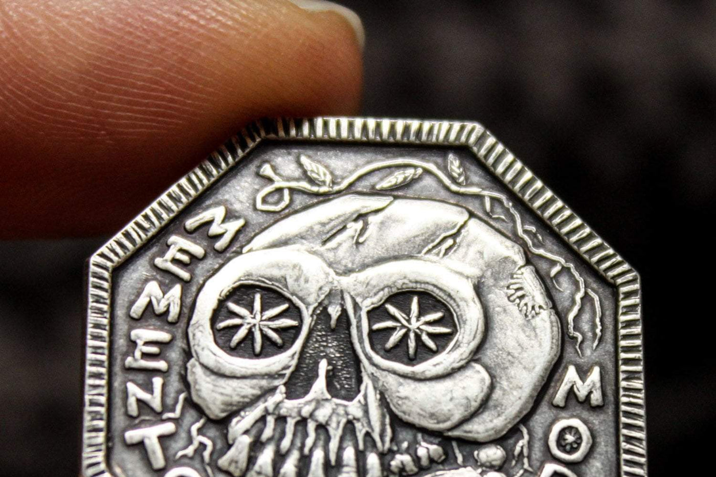 There is a long history of Memento Mori reminders, including coins. Shire Post Mint added their spin on the concept and included a new Memento Vivere reverse side. And now in solid silver, the bottom edge it stamped with 999 FS meaning 99.9% Fine Silver.