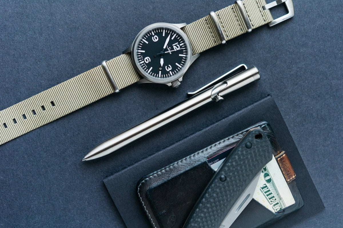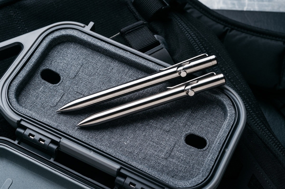 Titan ist eine der beliebtesten Materialien für Tactile Turn Stifte. Es ist nicht ganz so leicht wie Aluminium, aber sehr viel leichter als Edelstahl, Messing und Kupfer. Titan ist robust, leicht und sehr widerstandsfähig gegenüber Korrosion. Alle Teile dieses Stiftes sind aus Titan hergestellt, außer dem Clip, der aus Edelstahl gefertigt ist.