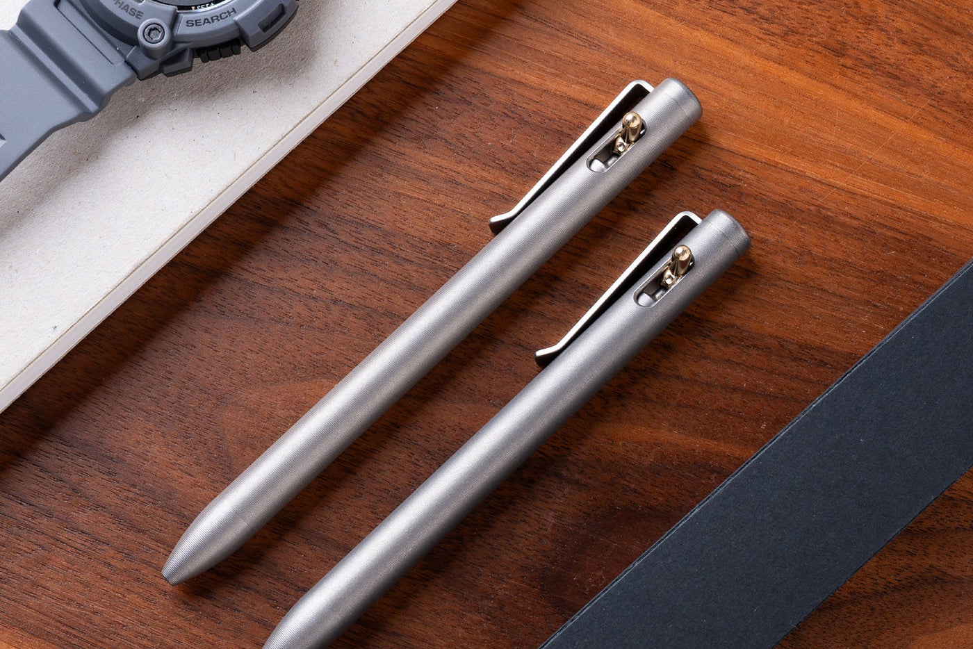 Fidget friendly, all-metal mechanism. Built with a titanium body and stainless steel clip.