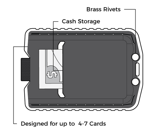 - Platz für 4-7 Karten und bis zu 5 Scheine