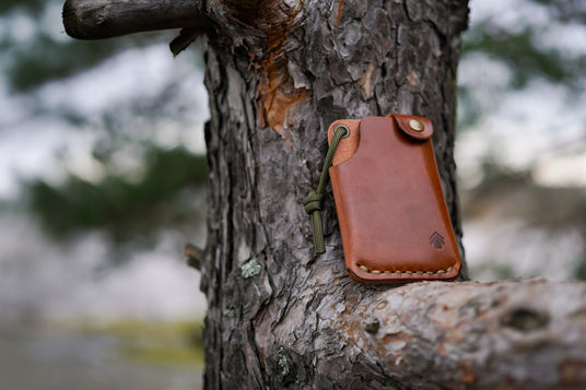 The Hitchhiker Wallet is built to keep your pockets slim without sacrificing utility. It offers one card pocket that comfortably holds 8–10 cards, along with a cash and receipt pocket for folded bills or notes. A single snap closure secures both compartments, keeping everything neatly in place. An eyelet adds versatility, allowing the wallet to be attached to a lanyard for security or quick access.