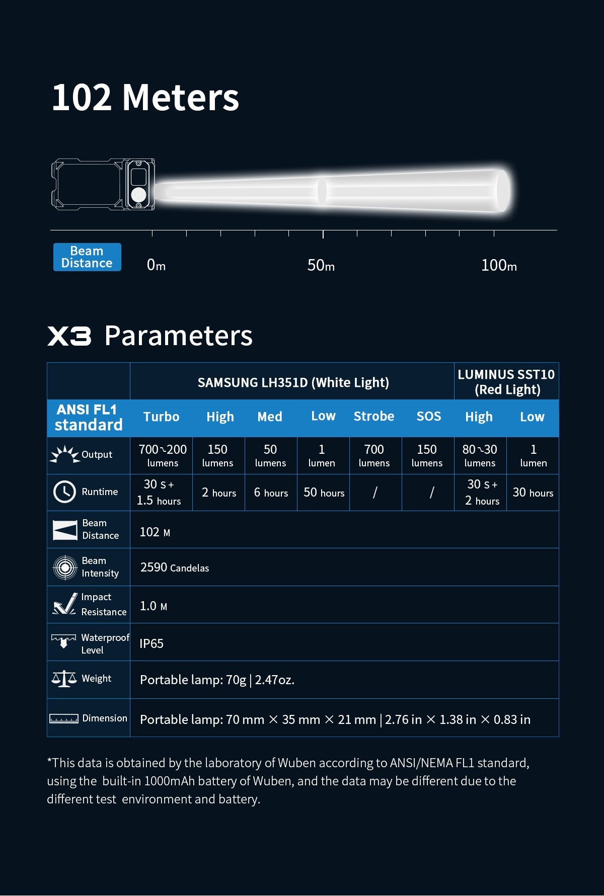 Die weiße Version der X3 verwendet nachleuchtendes Material, das auch im Dunkeln ein schwaches Licht abgibt. Dies erleichtert das Auffinden der Taschenlampe zu jeder Zeit.