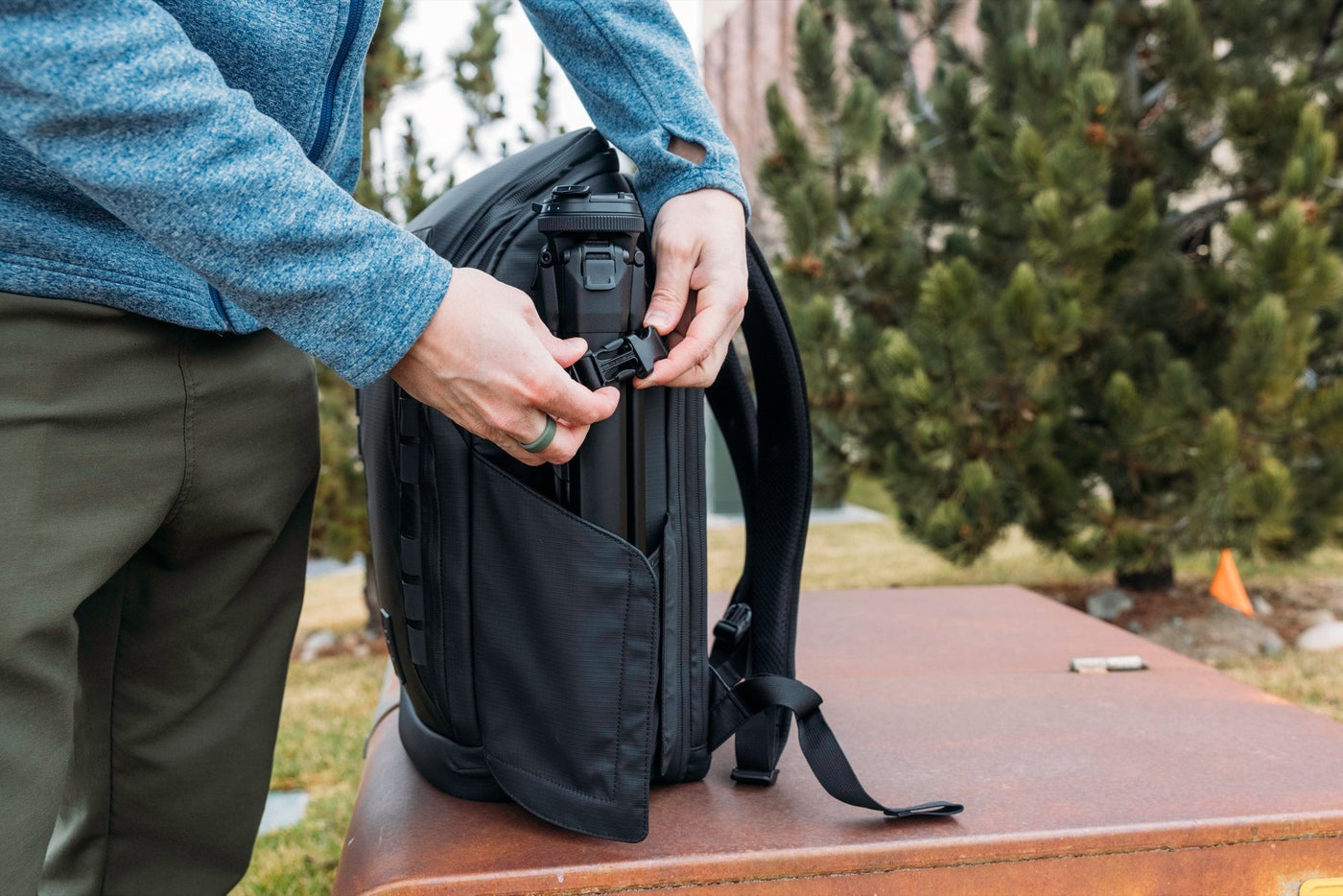 Use the internal Articulating Ladder system to split up your gear or remove the ladder completely. The Ladder system also allows you to expand the top area of the bag. On the inside of the back door, there are 4 internal zipper mesh pockets for organization of smaller items.