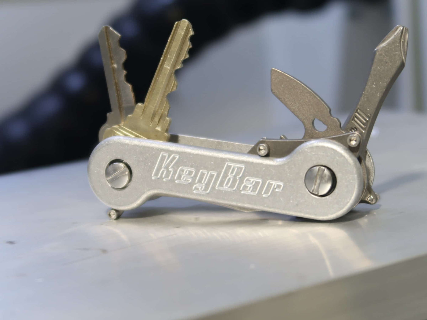 The KeyBar is a key organizer that works like a multi-tool for your keys and other everyday carry items. Just load your keys in and organize them how you want, and your keys stay put in a neat package without rattling sound or poking in the pocket. To use a key, simply turn it out from the KeyBar. The titanium pocket clip allows easy attachment to the pocket, belt or bag.