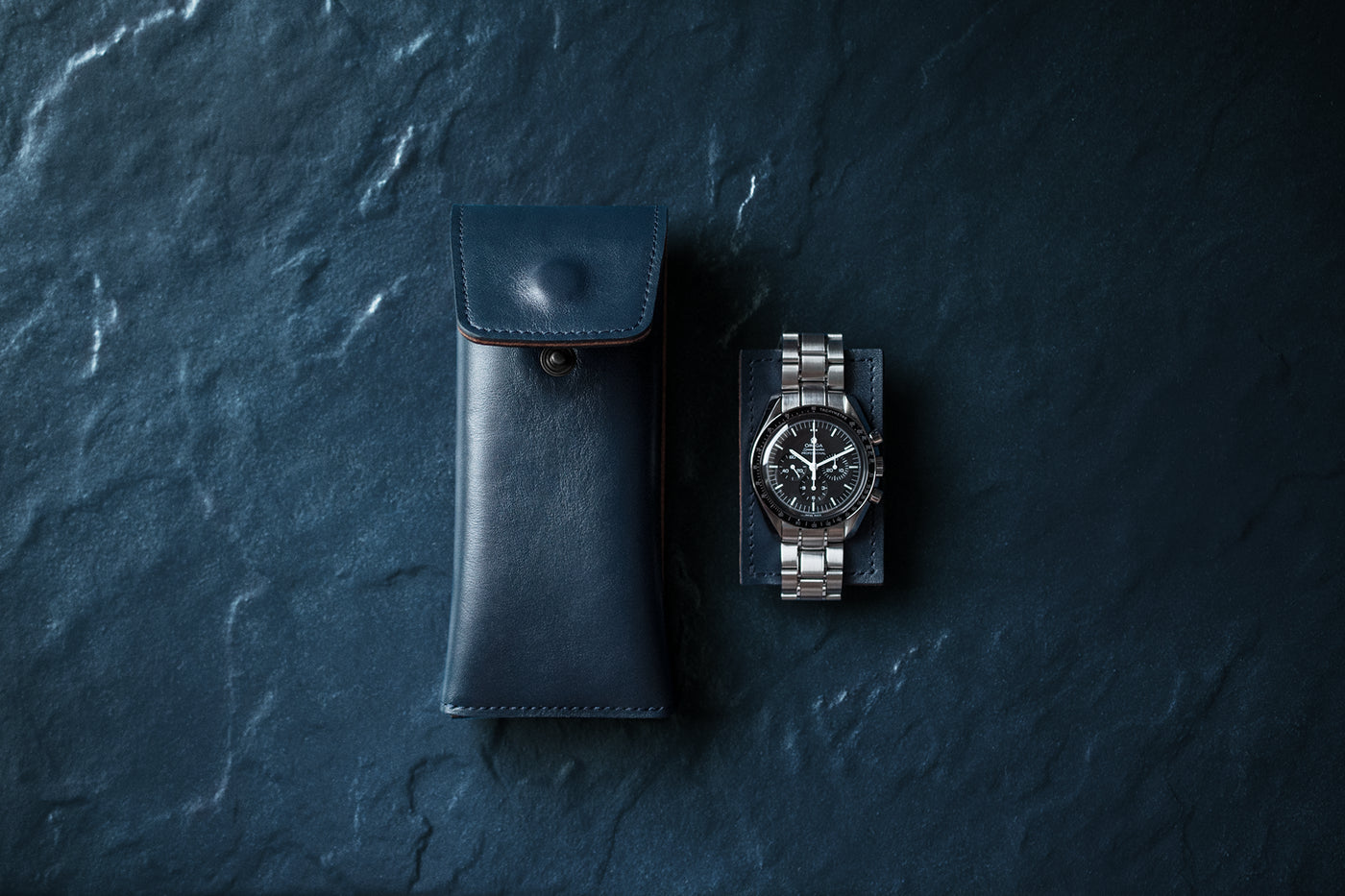 Watch Pouch on suunniteltu yhden rannekellon säilytykseen. Siinä on rannekelloa varten yksi tasku, joka on tehty italialaisesta full-grain -nappanahasta ja vuorattu italialaisella suede-nahalla. Lisäkerros takana jatkuu nepparisulkimeen ja koko tasku on tikattu yhteen saksalaisella Ritza-langalla. Mukana tulee suede-nahalla vuorattu kellotuki, joka suojaa kellorungon alaosaa. Nahkaan kertyyn ajan saatossa hieno patina.