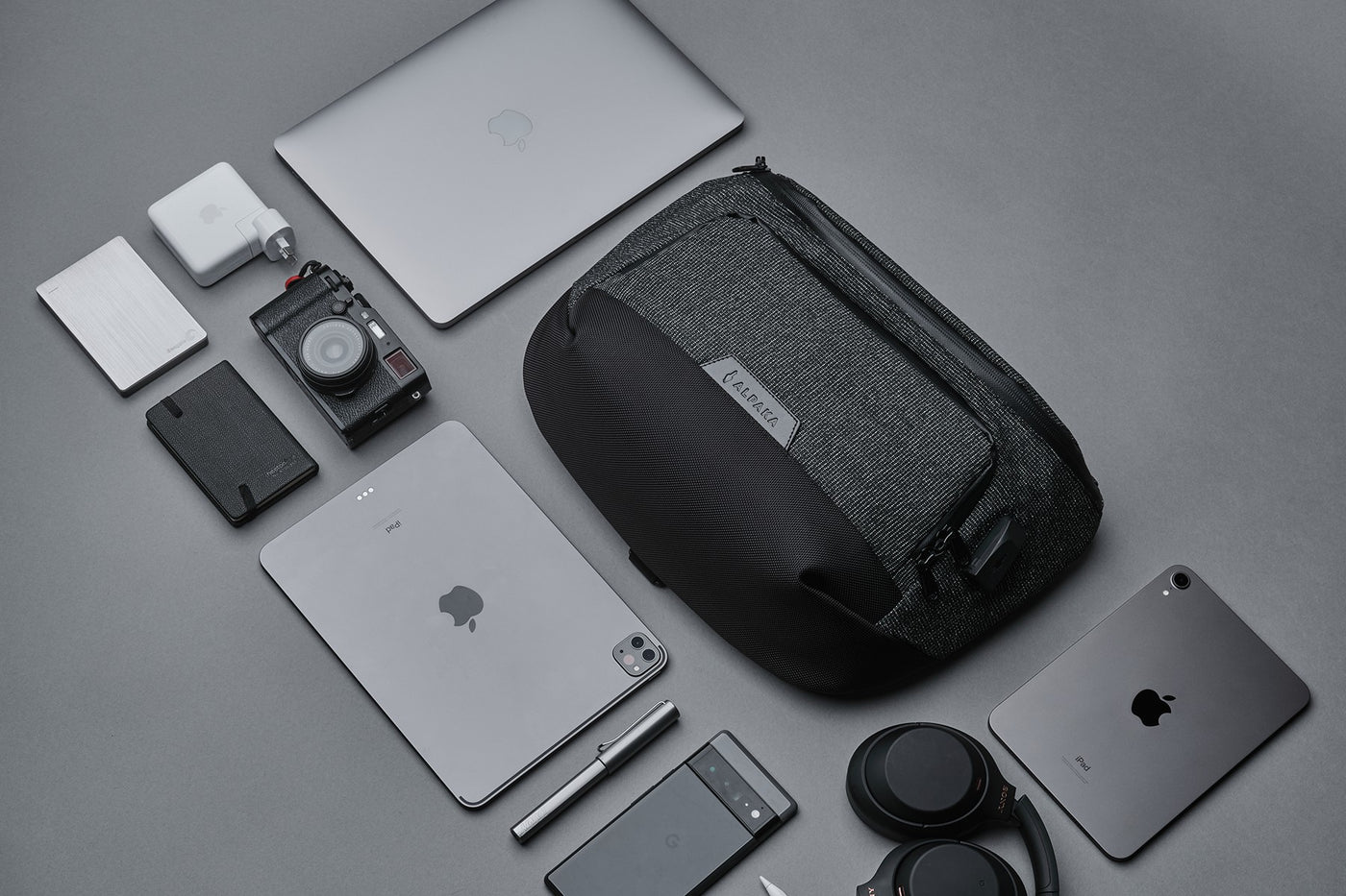 Bravo Sling Max Pro on suunniteltu teknisten laitteiden turvalliseen kantamiseen ja organisointiin. Etupaneelin 5 taskua pitävät johdot ja tarvikkeet järjestyksessä ja pehmustettuun kannettavan paikkaan mahtuu jopa 14" laite. Pehmustettuun takaosioon menee 12,9" tabletti. Ulkoinen USB-portti auttaa pitämään laitteet virrassa liikkeellä ollessa ja takana olevaan piilotaskuun voi jemmata pienempiä arvotavaroita.