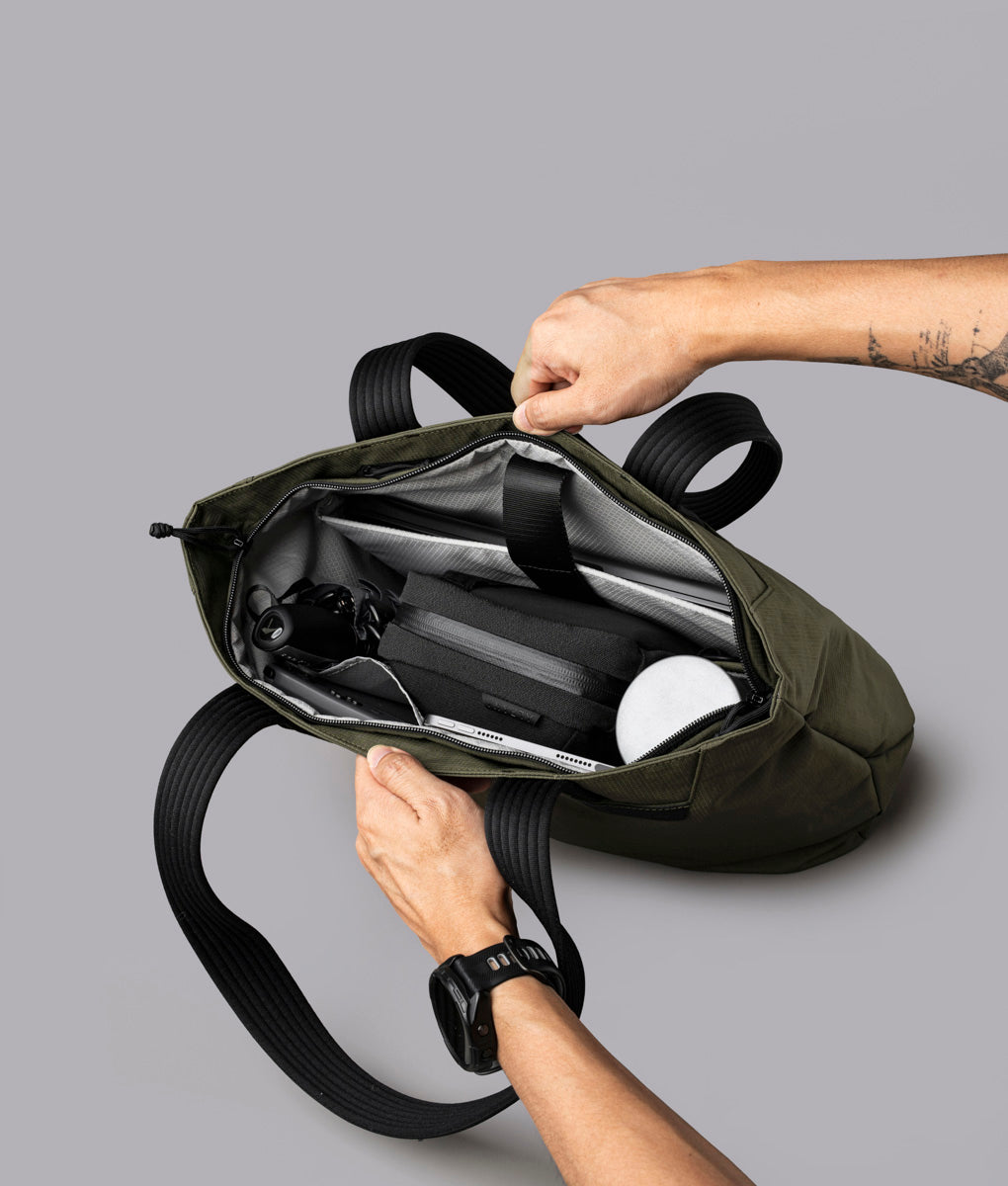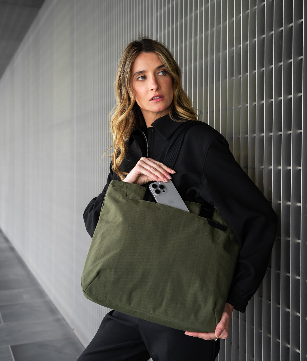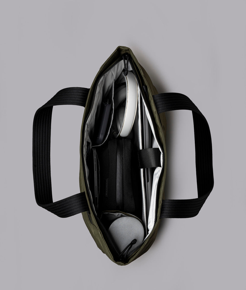 Flight Tote -laukku on suunniteltu monikäyttöiseksi arkilaukuksi, jonka kanssa pärjää kaupungilla ja reissuilla. Läppäri, puhelin, juomapullo ja muut tärkeät tavarat sujahtavat sisään vaivatta. Olkahihnoissa on jämäkkä pito ja ne tarjoavat mukavuutta koko päiväksi. Laukun sisällä on runsaasti organisointitaskuja, joten tavarat pysyvät hyvässä järjestyksessä. 14" kannettavalle ja juomapullolle on omat taskunsa, joista ne saa helposti käsiin. Ulkopuolella on etutasku magneettisulkimella ja MOD-avainlenksulla.