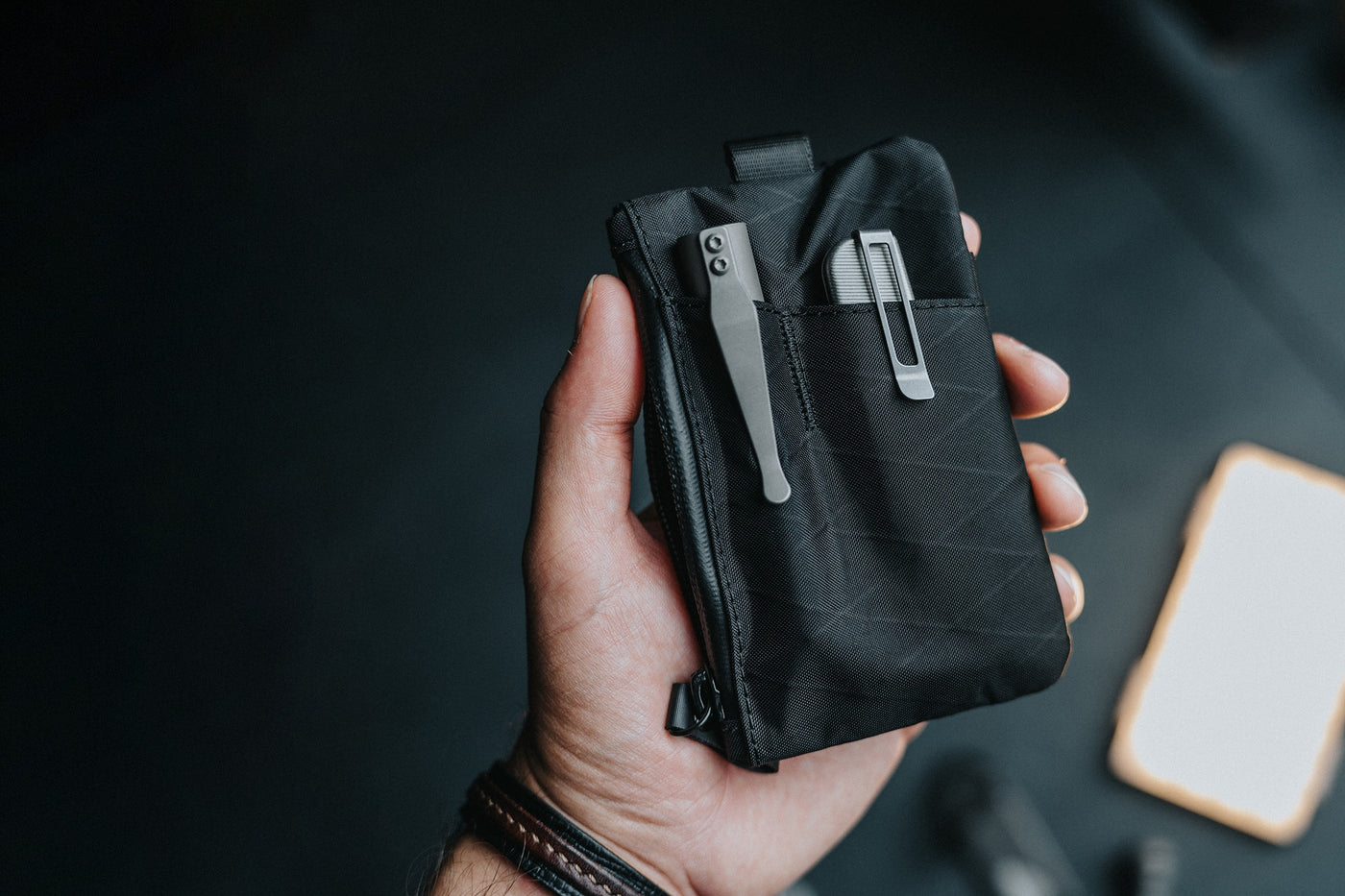 Zip Pouch Pro kantaa kortit, käteisen, työkalut ja muut pientarvikkeet kompaktissa ja taskuun sujahtavassa paketissa. Siinä on turvallinen tila usein käytetyille tavaroille ja lisätaskut kolikoille sekä muille pientarvikkeille. Ulkopuolella olevassa kolmessa taskussa voi pitää EDC-työkaluja kuten taskulamppua ja monitoimityökalua.