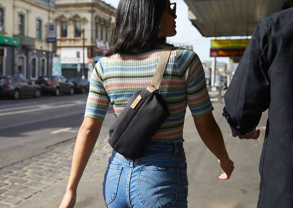 Sling Mini -laukku pitää kätesi vapaina ja taskut kevyinä. Se on riittävän suuri tärkeimmille tavaroille, ja samalla riittävän pieni vaivattomaan liikkumiseen. Laukku on erityisen käytännöllinen silloin, kun lähdet ulos ilman takkia mutta et tarvitse reppua.