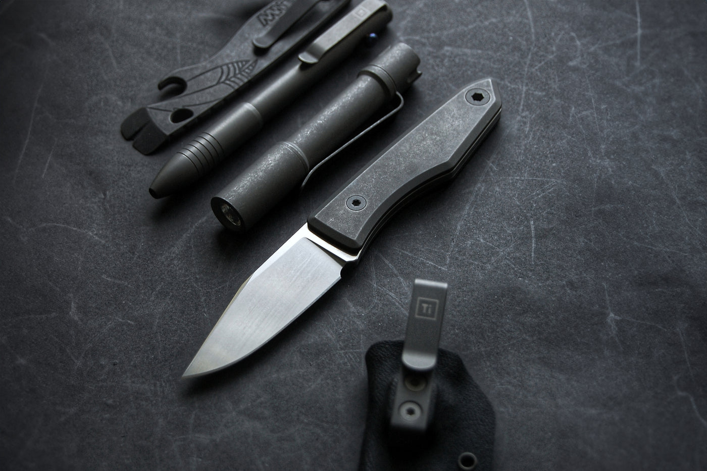 - Mukana 2 Kydex-koteloa (vasempaan ja oikeaan taskuun) sekä yksi titaaniklipsu