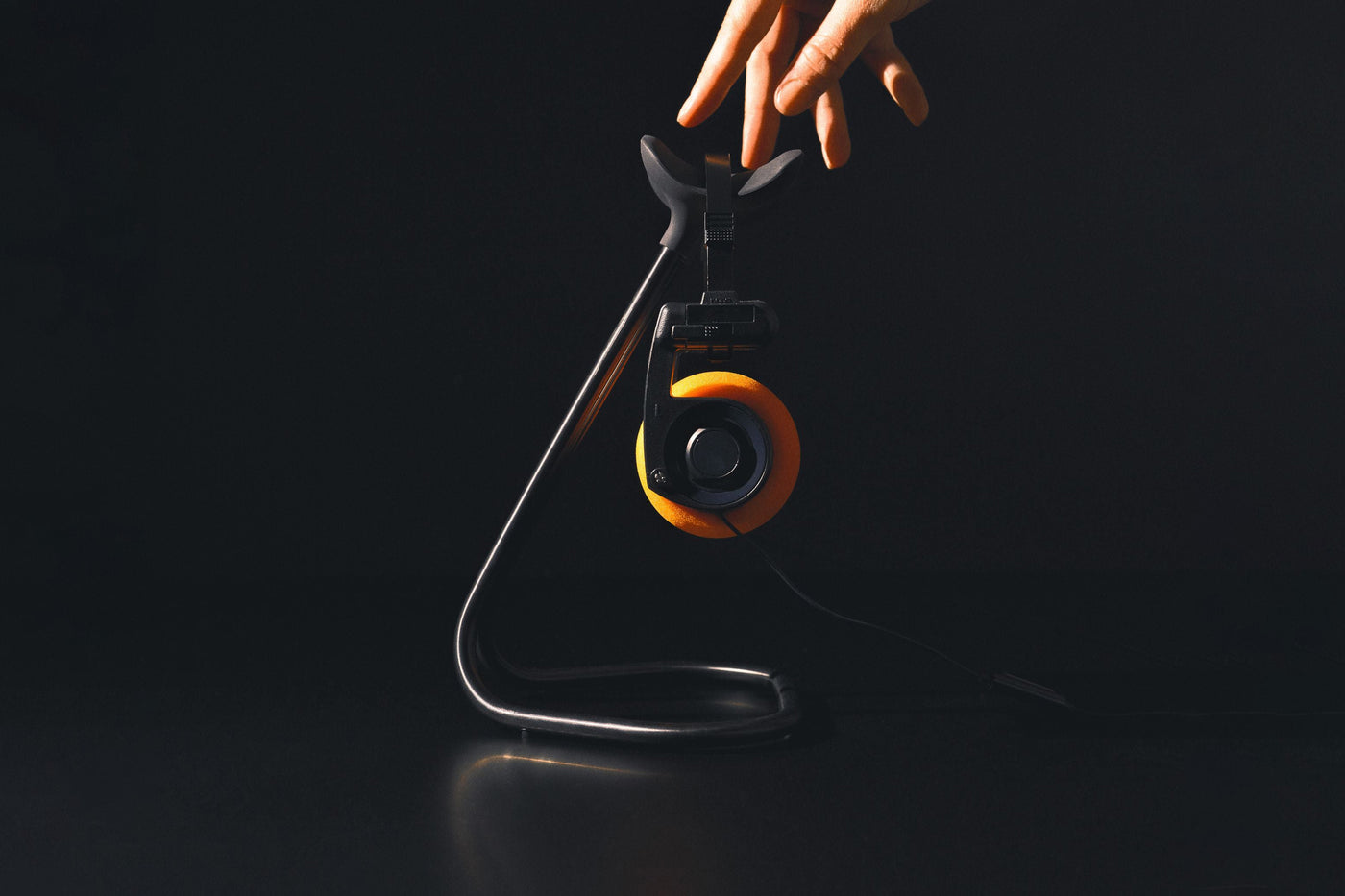 Sen muotoilu on saanut inspiraationsa modernin arkkitehtuurin kaarevista linjoista. Rakenne yhdistää taivutetun teräsrungon ja muotoillun silikonipehmusteen, luoden täydellisen lepopaikan suosikkikuulokkeillesi. Tämä veistoksellinen esine sopii luontevasti ympäristöön, jossa äänenlaadulla ja estetiikalla on merkitystä.