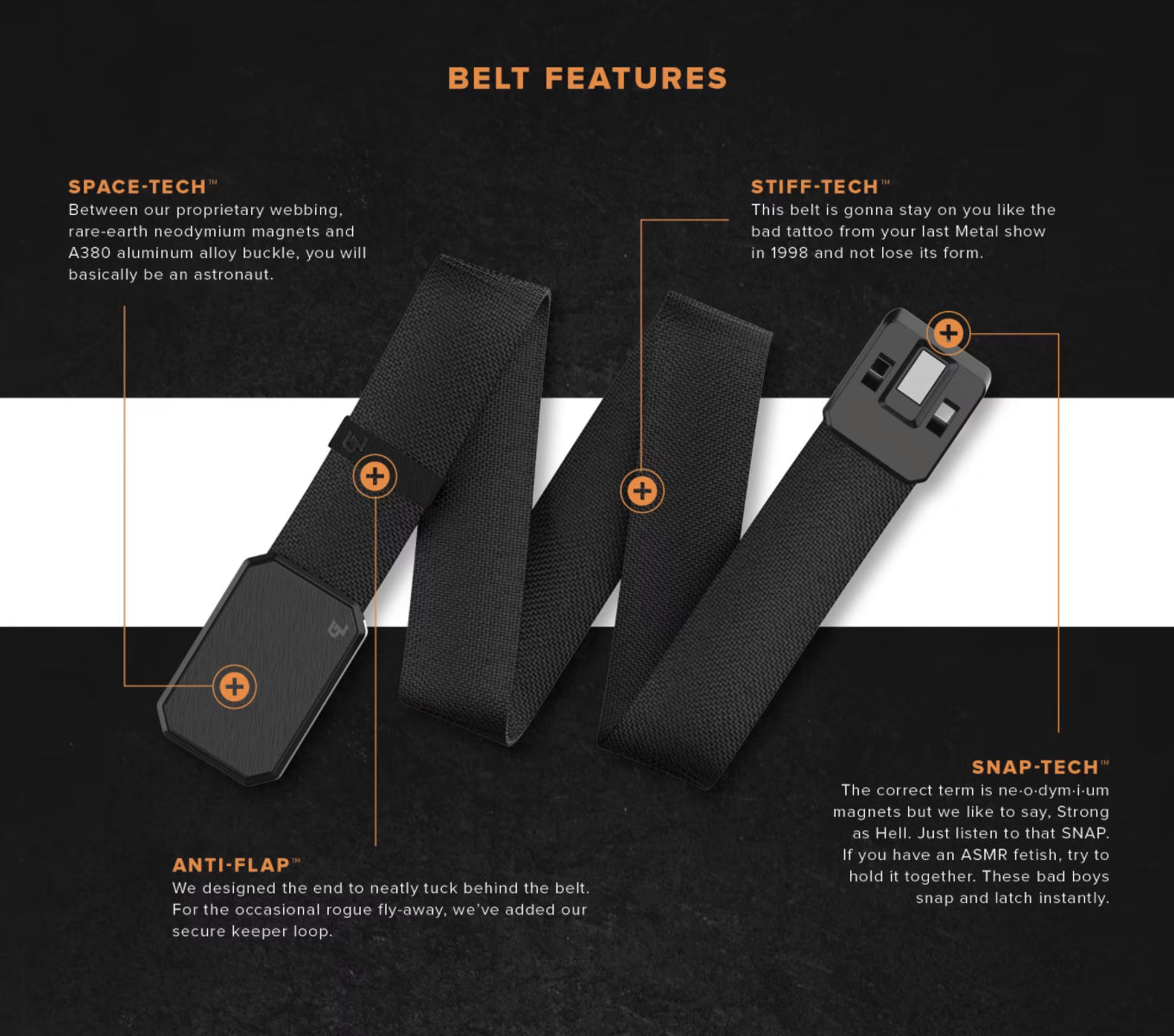Groove Belt -vyössä on sopiva yhdistelmä joustoa ja tukea, tuntuen mukavalta koko päivän ja joka päivä. Alumiinisoljessa on voimakkaat neodyymimagneetit helppoon, saumattomaan kiinnitykseen. Sitä voi käyttää yhdellä kädellä ja napsautus on mukava ja melkoisen addiktoiva.