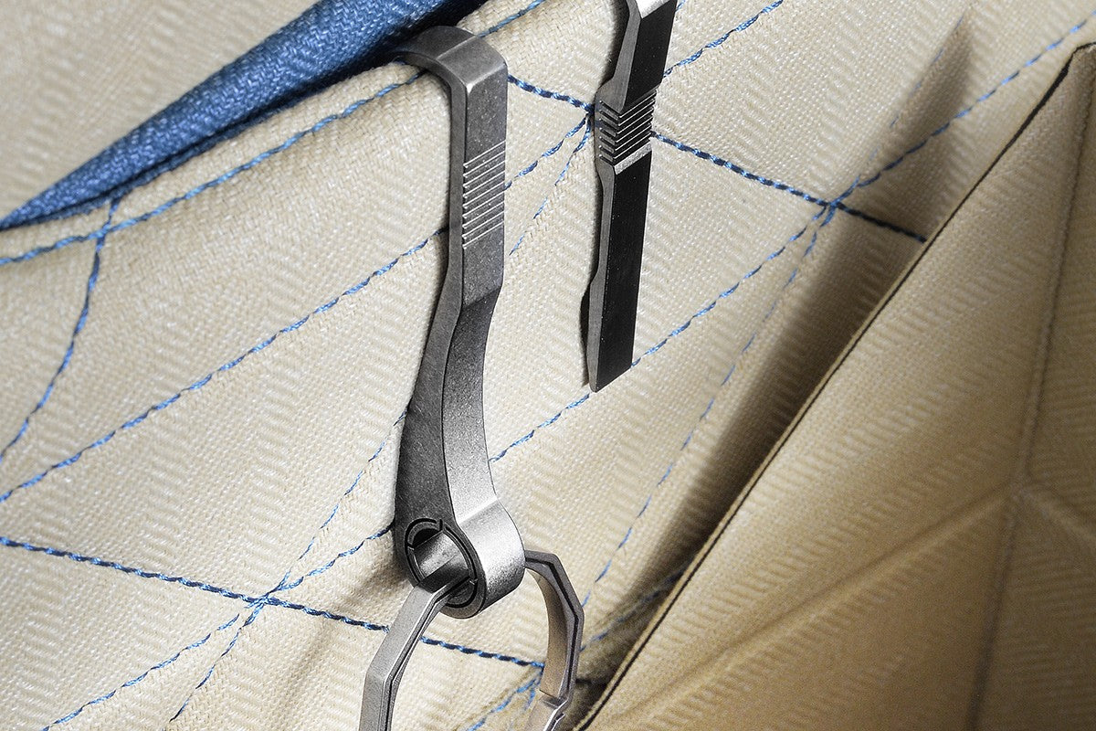 KIN-avainkoukun sisäpuolella on riittävästi tilaa, joten sen saa kiinni paksumpaakin laukun hihnaan tai vyöhön. Koukku joustaa hieman, mikä helpottaa kiinnitystä tarvittaessa entisestään ja pitää koukun paremmin paikallaan. Pienet urat tarjoavat lisäpitoa koukun käsittelyyn.