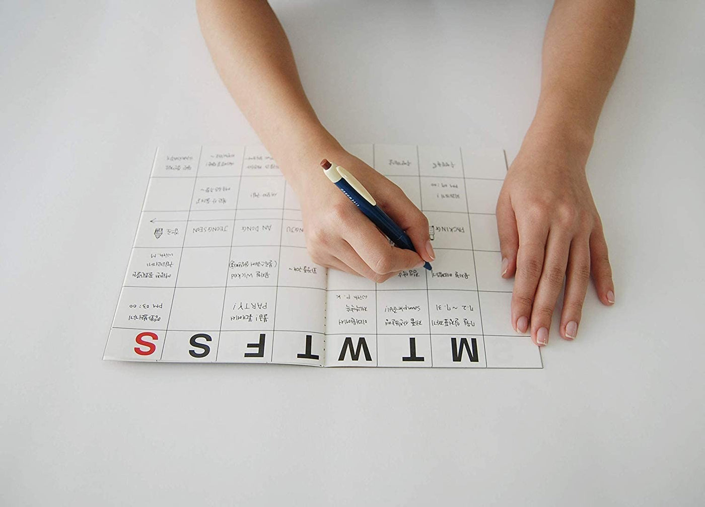 Jstory Medium Monthly Planner -kalenterilla saat organisoitua kuukausittaisen aikataulusi. Jokaisella aukeamalla on yksi kuukausi, ja jokaiselle päivälle on yksi iso ruutu johon saat lisättyä päivän muistiinpanot. Viikonpäivät ovat ma-su, mutta muuten kalenterissa ei ole päiväyksiä. Voit siis kustomoida ja käyttää kalenteria aivan miten haluat, eikä siinä ole vanhenemispäivää. Kalenterissa on yhteensä 16 kuukautta/aukeamaa.