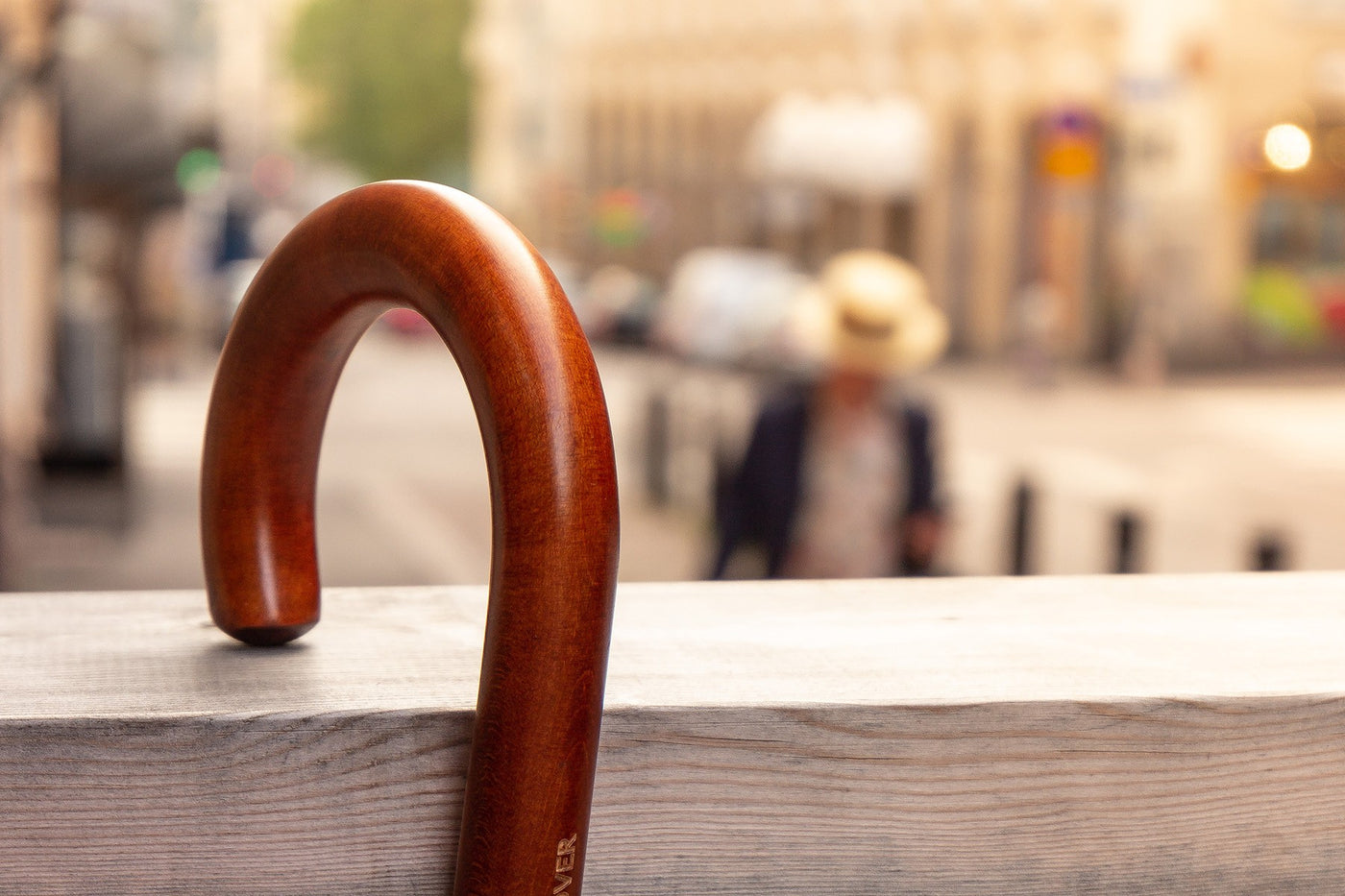 London Undercover Classic -sateenvarjo pitää sadetta loitolla brittiläisellä tyylillä ja varmalla otteella. Vaahterapuinen varsi on tukeva ja tuntuu miellyttävältä matkalla töihin. Kaksikerroksinen kangas ei päästä vettä läpi ja kuivuu nopeasti.