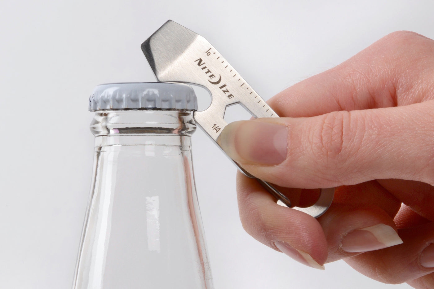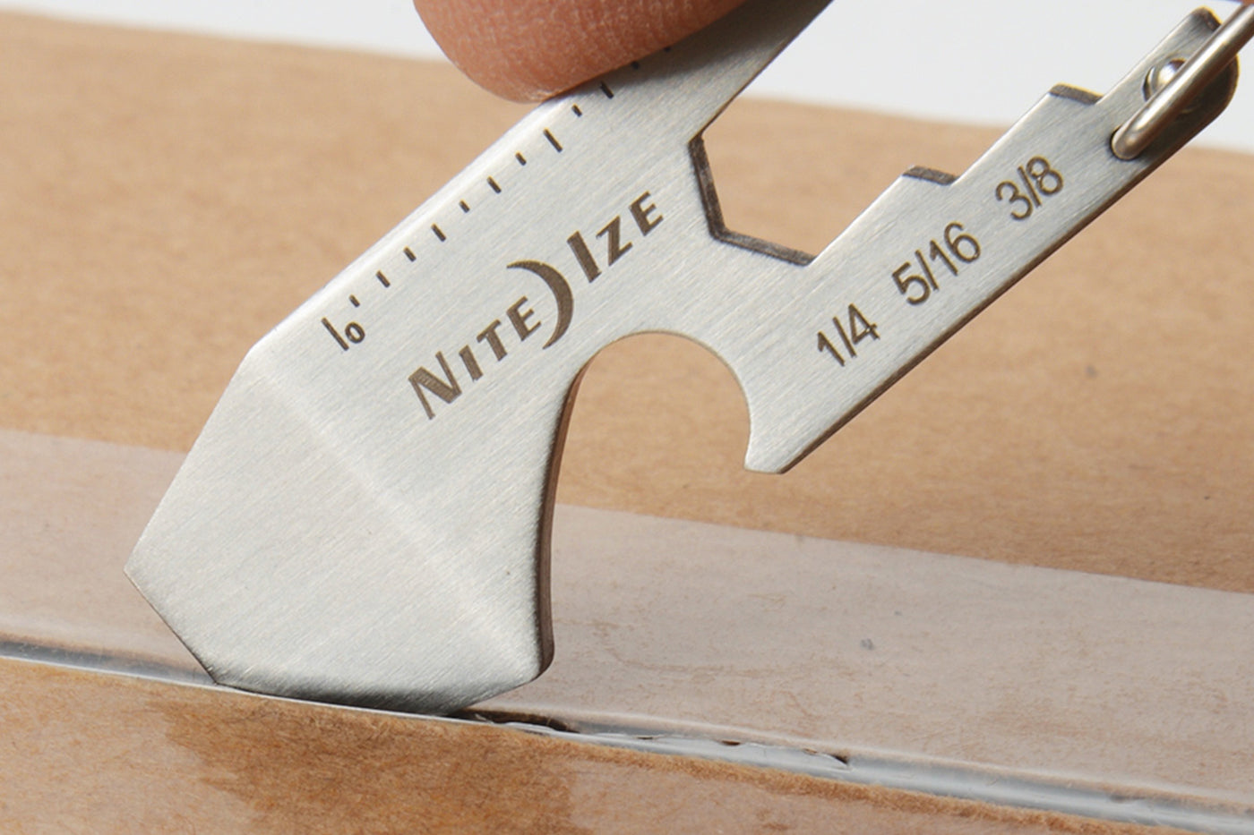 Karabiineriklipsulla saat siihen avaimet kiinni tai kiinnitettyä itse työkalun mihin tahansa lenkkiin. Toisella puolella on mitta sekä jakoavaimet, päässä pullonavaaja, talttapäinen ruuvimeisseli ja laatikon avaaja.