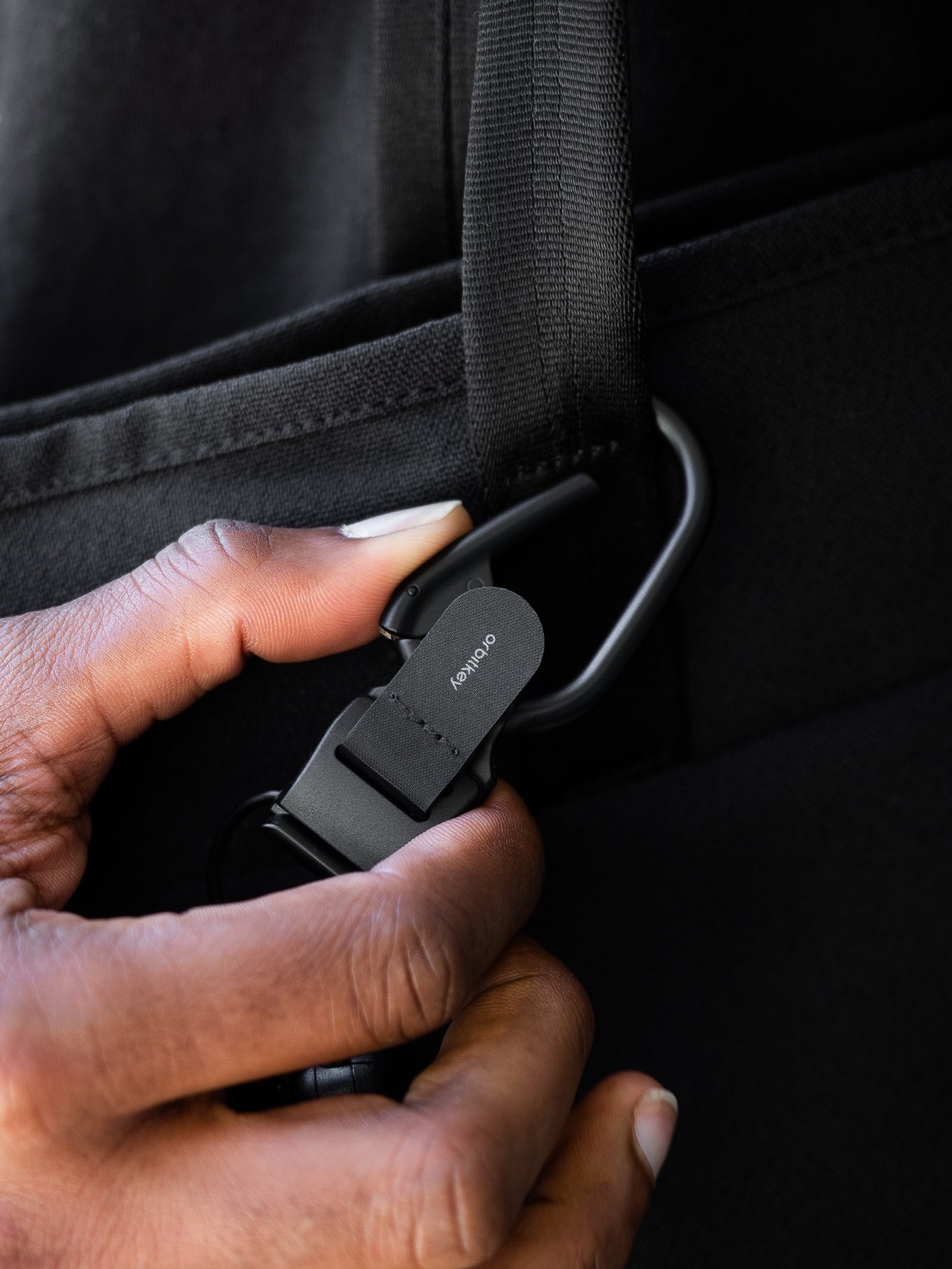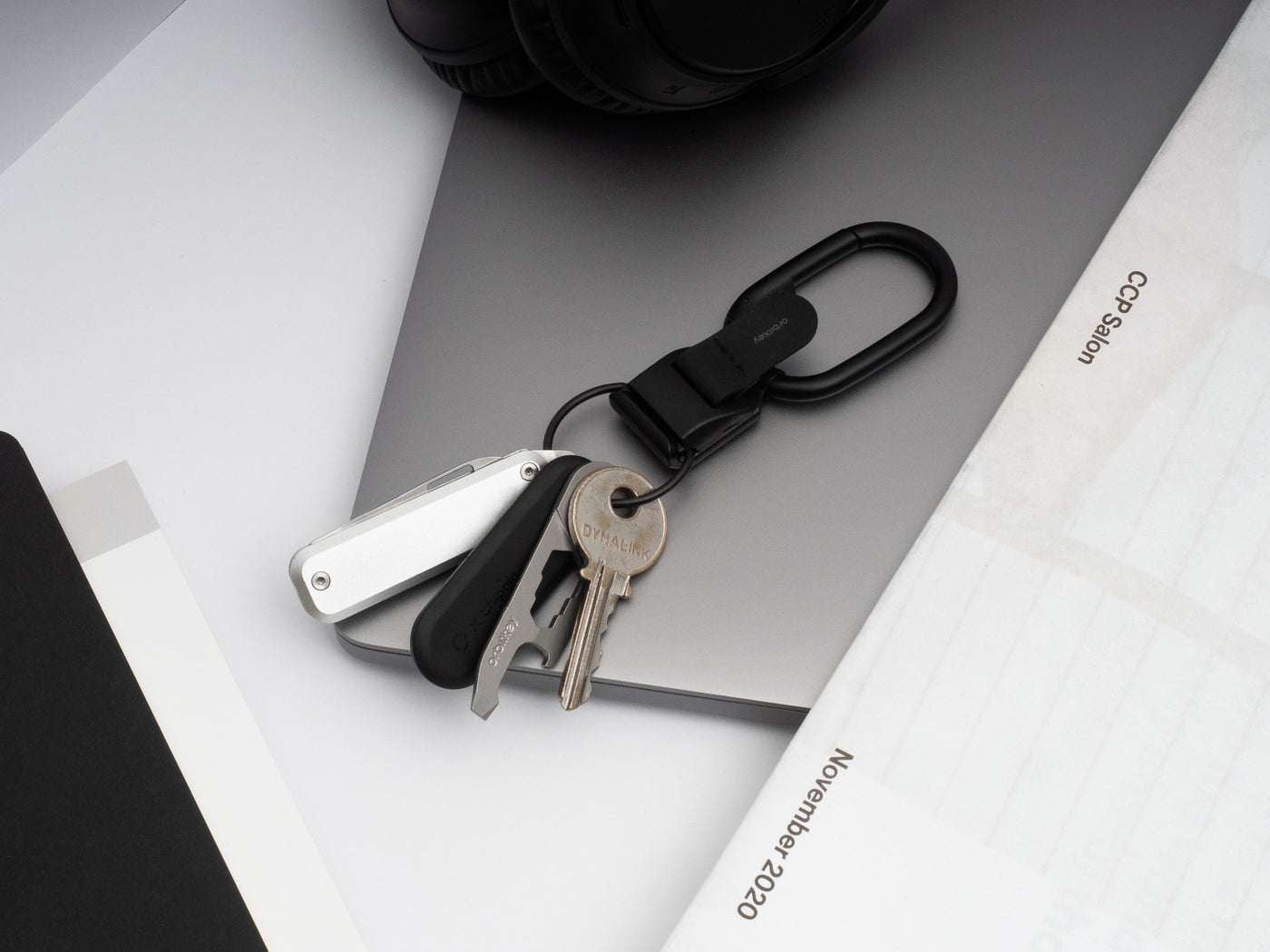 Uudessa Clip-avaimenperässä on magneettinen Fidlock®-pikakiinnitys, jolla pääset avaimiin vaivatta käsiksi ilman taskujen tai laukun kaivamista, tai edes irroittamatta karabiineria. Reilun kokoinen karabiinerin portti kiinnittyy helposti vyönlenkkiin tai laukkun, ja irroitettavaan D-lenkkiin saat kiinni isommatkin autonavaimet.