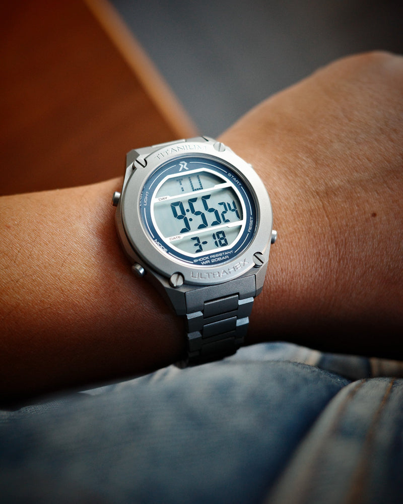 UltraHex™ Titanium Digital (UTD) on suunniteltu ja testattu Kanadan pohjoisen vaativissa olosuhteissa. Se kestää vettä, pölyä, ruostetta, naarmuja, iskuja ja tärinää. Kellossa on kehittynyt, täysin kustomoitu moduuli, joka toimii luotettavasti myös äärilämpötiloissa. UTD-8000 yhdistää RZE:lle ominaisen erinomaisen käyttömukavuuden ja luotettavuuden.