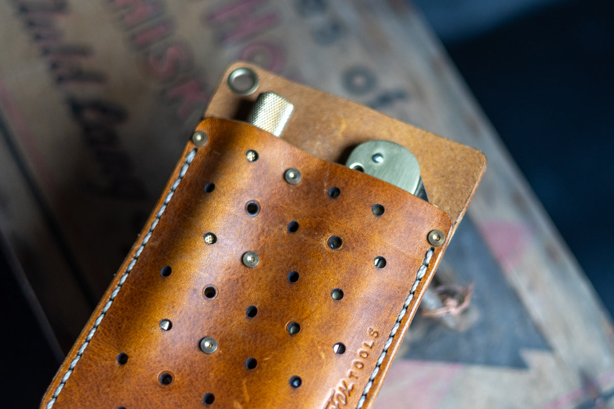 Mule Pouch on konifguroitava EDC-organiseri, joka mukautuu tarpeisiisi. Se on valmistettu ensiluokkaisesta, paksusta nahasta ja huolellisesti käsin ommeltu kestävyyden takaamiseksi. Siirrettävillä niiteillä voit muokata taskujen kokoa ja muotoa, jotta työkalusi mahtuvat täydellisesti. Mahtuu 2-3 työkalua vaivattomasti ja tyylikkäästi.