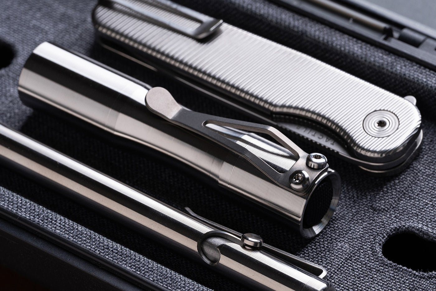 Apollo on valmistettu ensiluokkaisista materiaaleista ergonomisella, kaarevalla muotoilulla. Titaaninen klipsu on kiinnitetty runkoon kustom-ruuveilla, ja kokonaisuuden kruunaavat safiirilinssi sekä klikkikytkin.