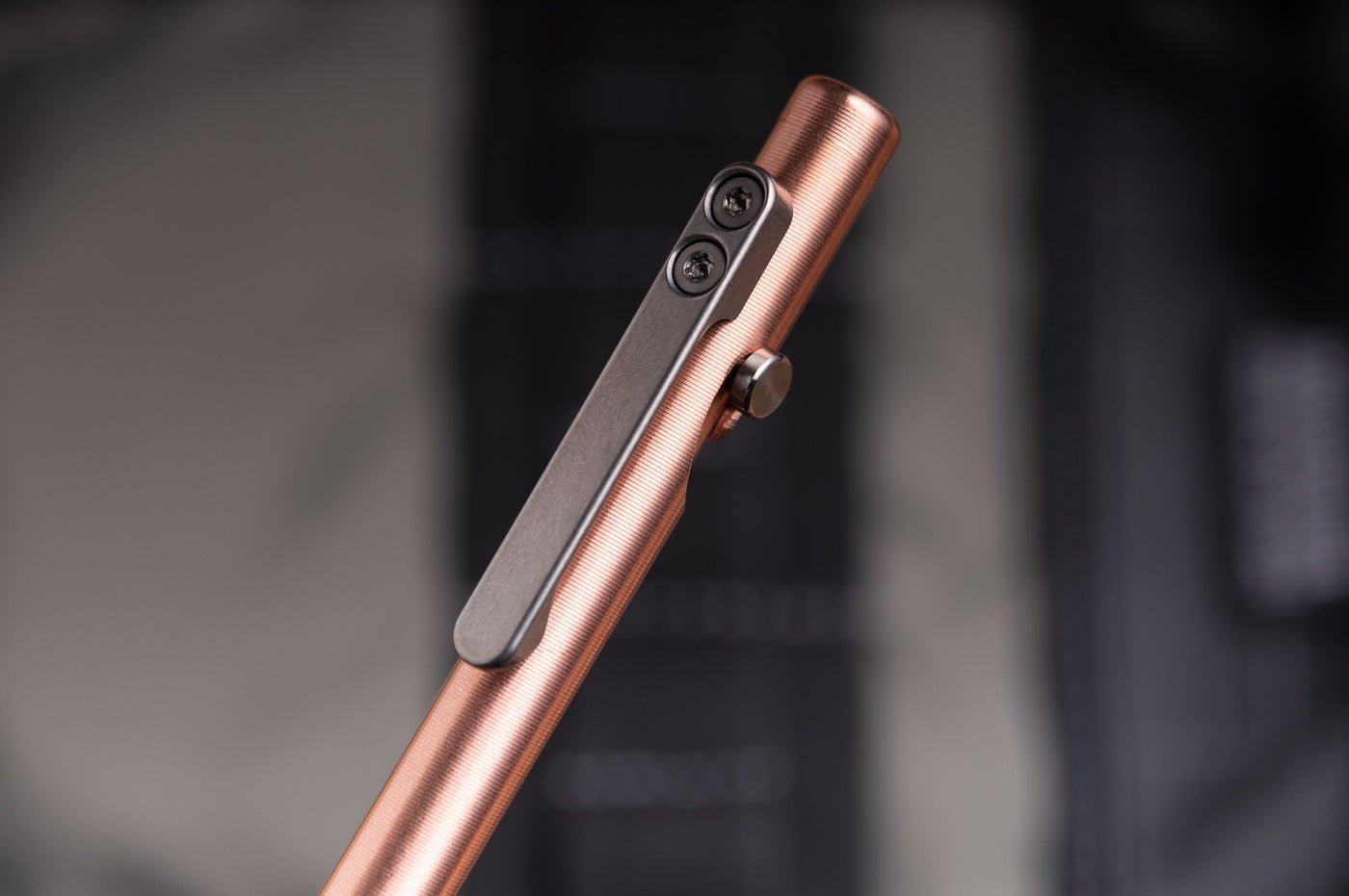Yksi yleisimmistä toiveista mitä Tactile Turn on vuosien varrella saanut, on ohuempien kynien teko. Joten tässä ne ovat, Slim Bolt Action -kynät. Sama uniiikki pulttilukkomekanismi ja mustesäiliöyhteensopivuus kuin tavallisessa Bolt Action -kynässä, mutta ohuemalla rungolla. Tämä on viimeisin malli uudella yhden ruuvin taskuklipsulla.