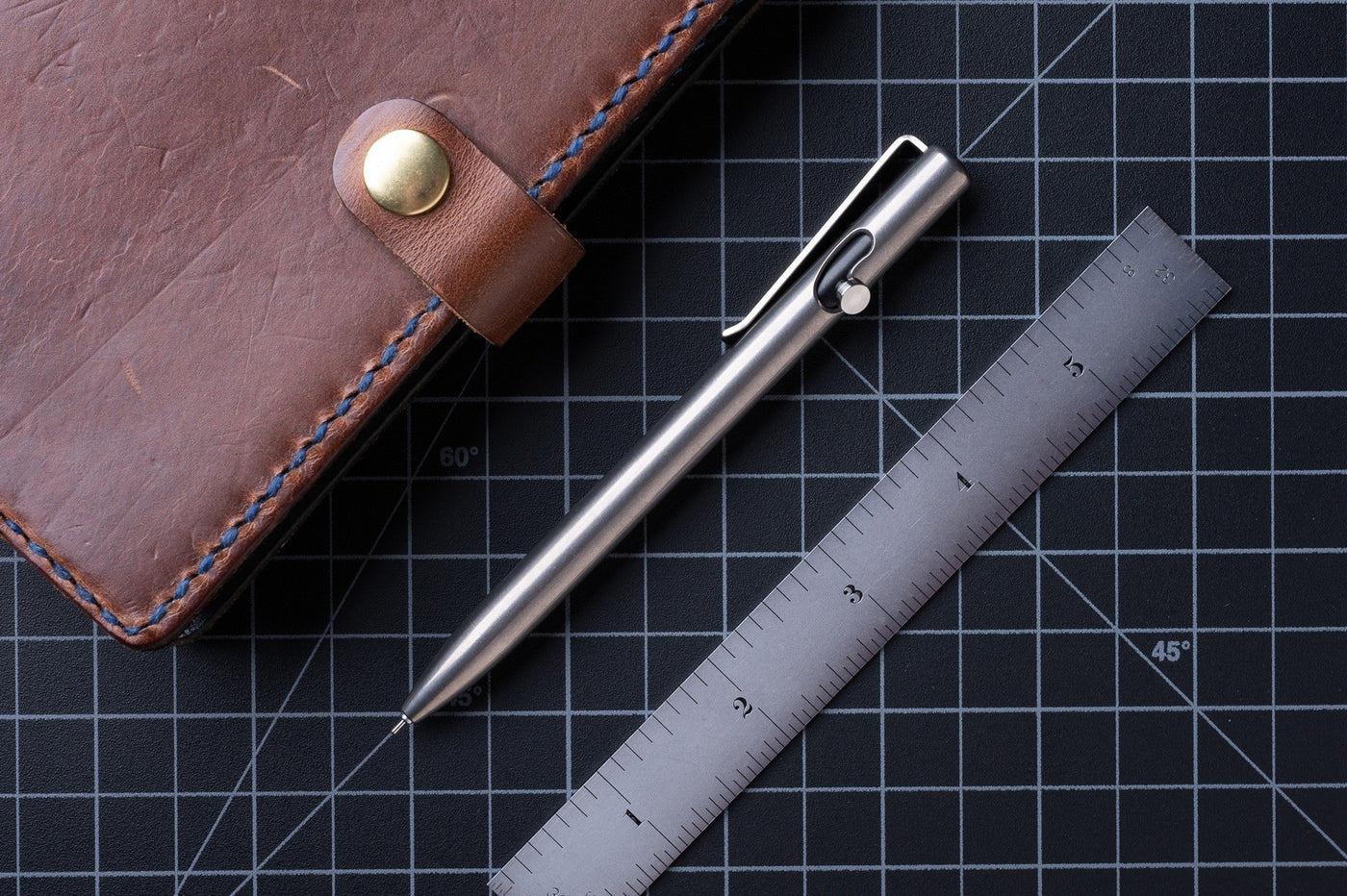 Tactile Turnin tavoite oli yksinkertainen ja selkeä - tee mahdollisimman sulava kynä ja pidä samalla hauskaa. Aloituksena käytettiin titaanista Slim Bolt Action Short -kynää ja muut osat kuten Ultem-sisukset, jousi ja klipsu suunniteltiin uudelleen.