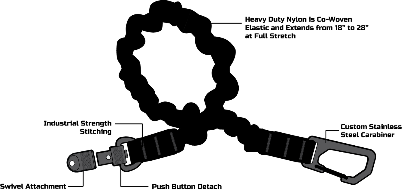 Link Stretch Lanyard on kestävä ja helppokäyttöinen hihna avaimille tai muille tarvikkeille, joita haluat kantaa mukana ja pitää lähellä, turvassa ja helposti saatavana. Hihnassa on pikalukitus ja ruostumattomasta teräksestä valmistettu karabiineri venyvässä benji-nailonhihnassa. Tuotteella on 65 vuoden Trayvax Heirloom -takuu.