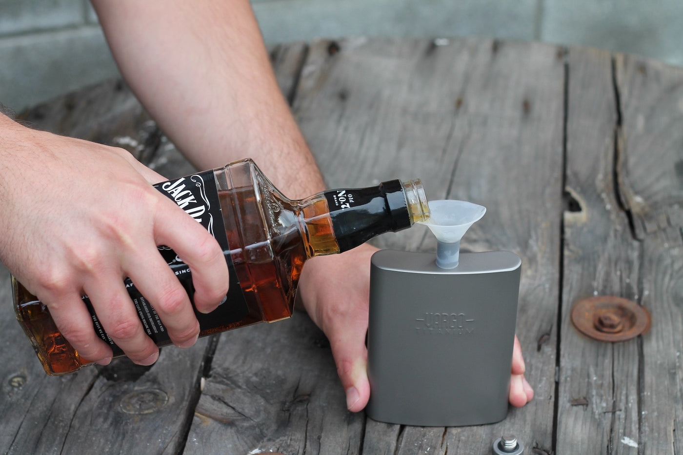 Patentoidun Vargo Funnel -taskumatin integroitu silikonisuppilo on aina siellä missä sitä tarvitset. Kun käännät sen ylös, taskumatti on helppo täyttää ja alhaalla ollessaan siemailu on miellyttävää. Suppilo toimii myös kaatonokkana, jos juomaa täytyy kaataa takaisin pulloon.