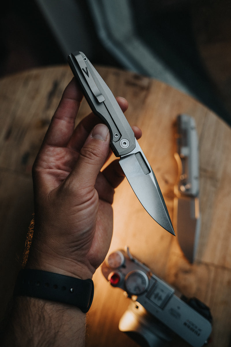 Lux Mini 3.3 on frame lock -veitsi Böhler M390 -terällä ja keraamisilla kuulalaakereilla. Sisäpuolelta koneistetut titaanikahvat ja kovera teräprofiili tekevät veitsestä erittäin kevyen. Veitsen voi avata kolmella tavalla: paukalourasta ja etu- sekä takaflipperistä.
