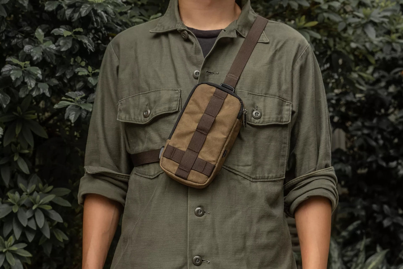 Voidaan kiinnittää mihin tahansa MOLLE-järjestelmään mukana tulevilla YKK-pikalukitussoljilla. Mukana toimitettavan olkahihnan ansiosta sitä voi käyttää myös pienenä sling-laukkuna.