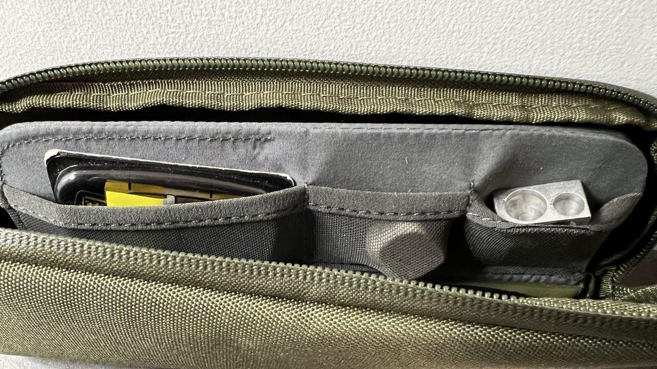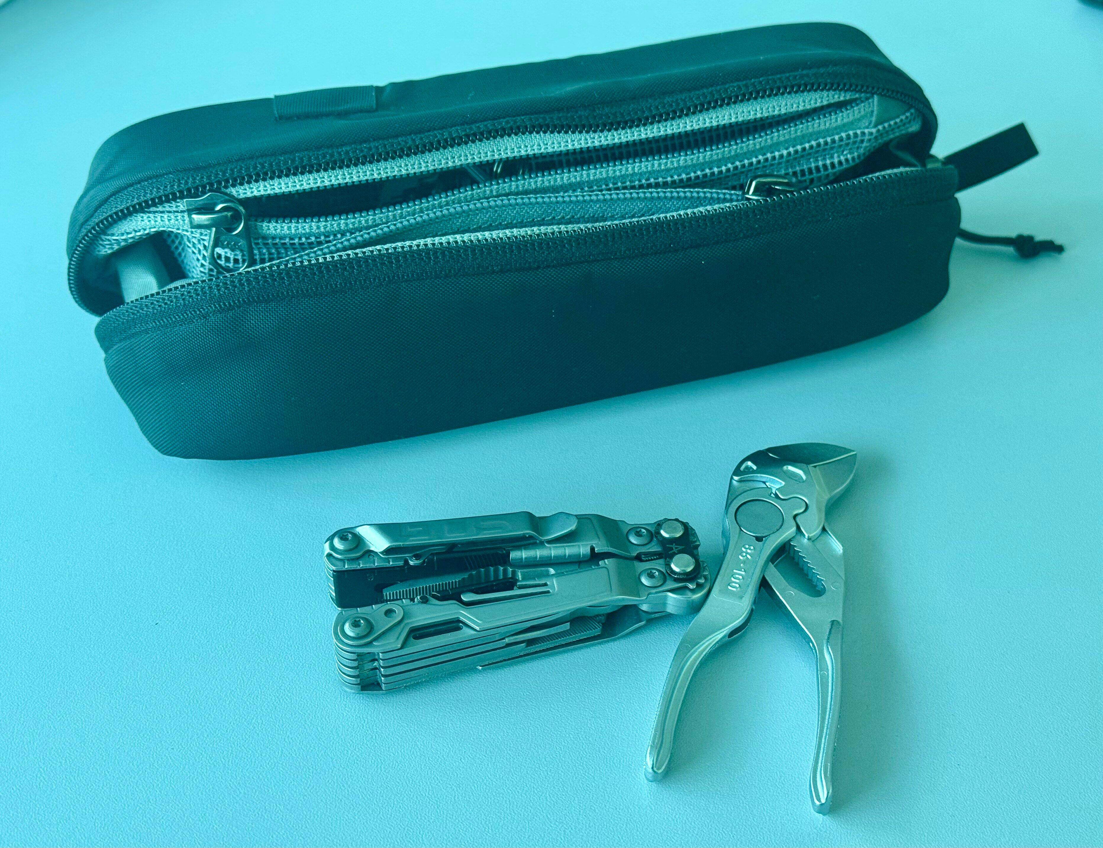 An EDC pouch that has a very good internal organization, very versatile, stands very well on a table when open or closed. The internal layout alternates between dividers, different sizes of space and pockets as well as a closure pocket. I recommend to organize all small objects taken away or multimedia accessories. They will be very well protected, easily accessible.