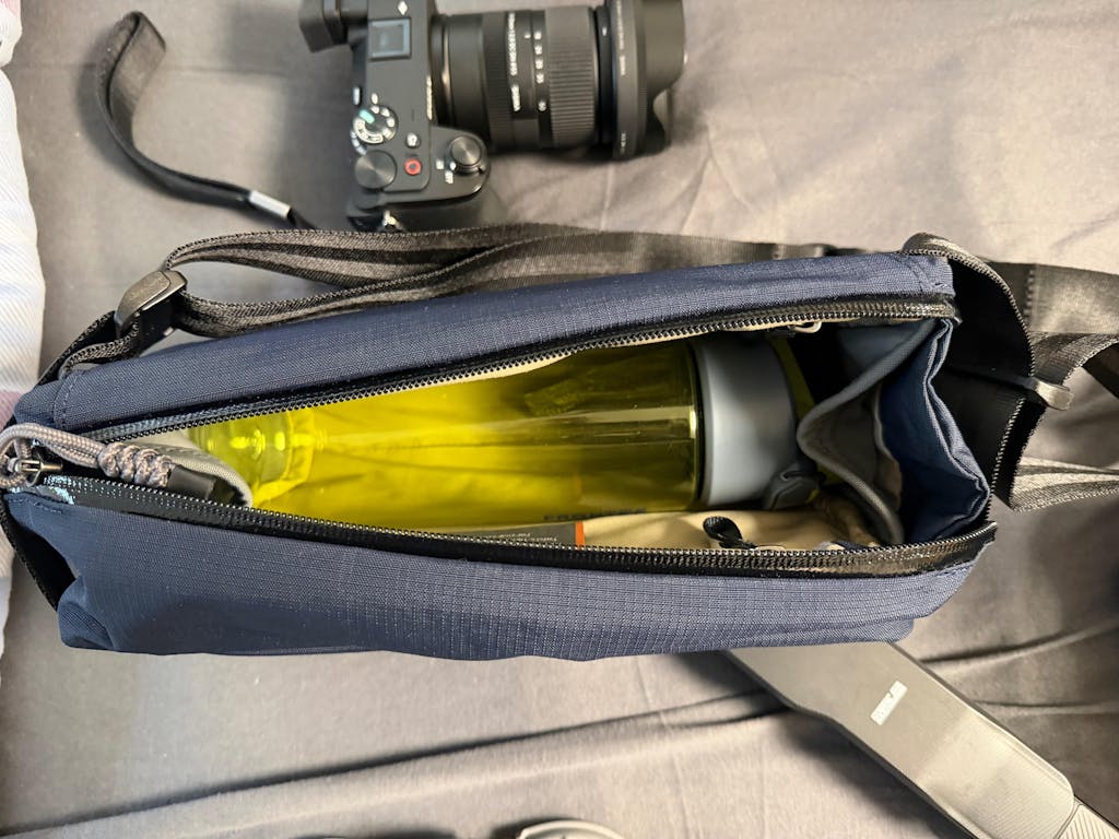 After trying out various sling bags, I finally found the perfect everyday companion. The workmanship and material are high quality and it is very comfortable to carry. Depending on what you are carrying, the volume of the bag adapts very well, which is also due to the type of suspension. When carrying less, the bag is nice and slim, and you can take more with you if needed. There is room for a small camera, and even a DJI Neo 2 or DJI Pocket 3 fit easily. The bag is also slightly padded on the back and bottom. The strap has no loose ends dangling around.