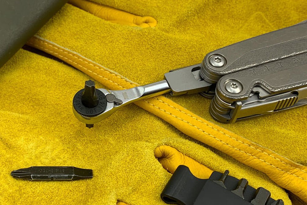 Flat End EDC Ratchet Wrench is compatible with Leatherman multitools accepting Leatherman proprietary flat screwdriver bits, including Arc, Wave+, Charge, Skeletool, MUT, Surge, and Signal.