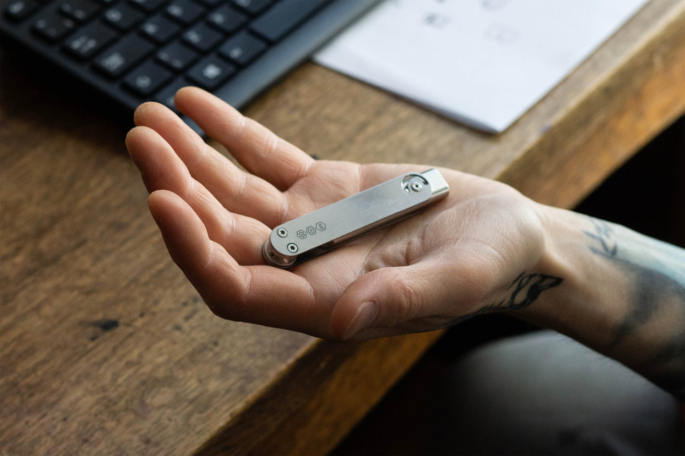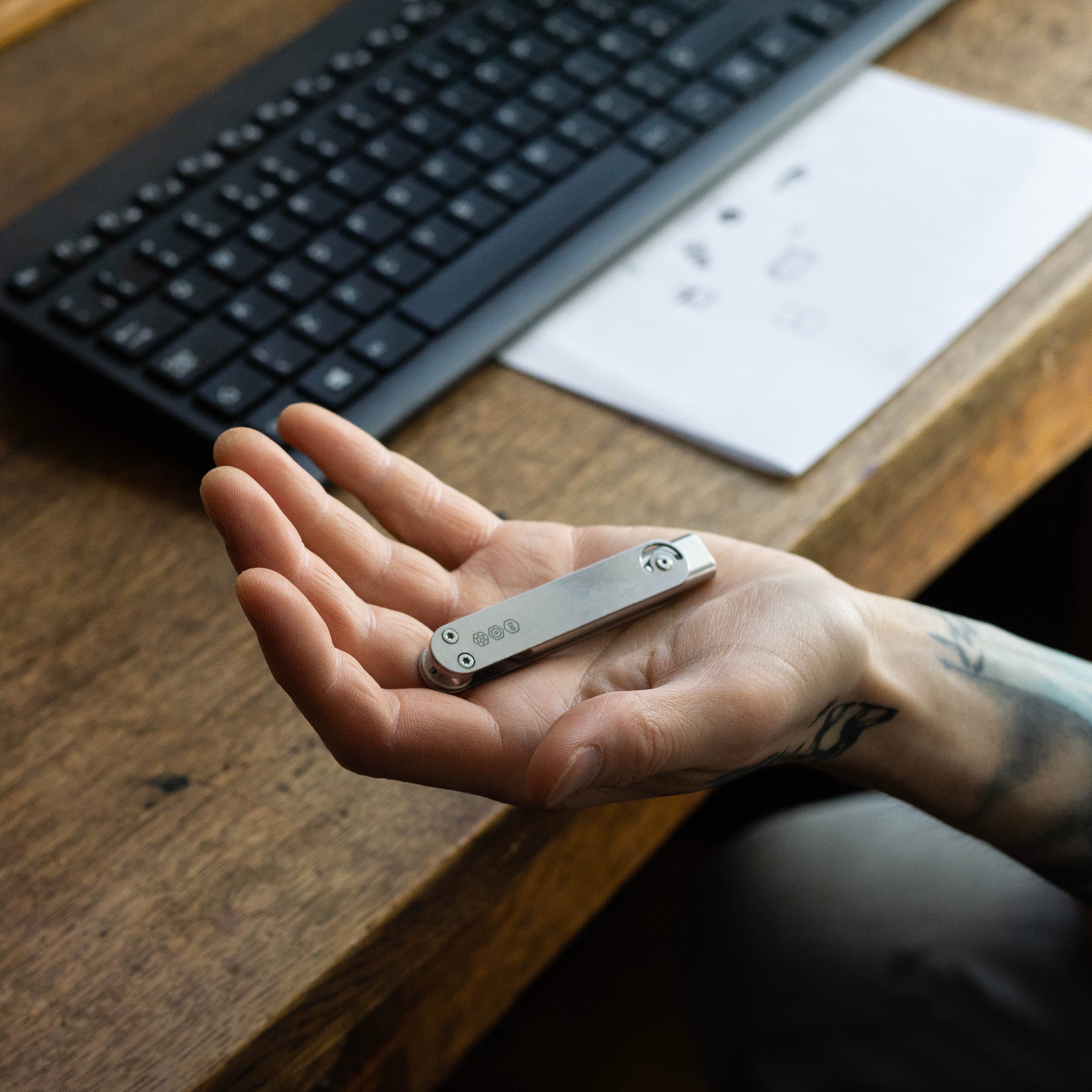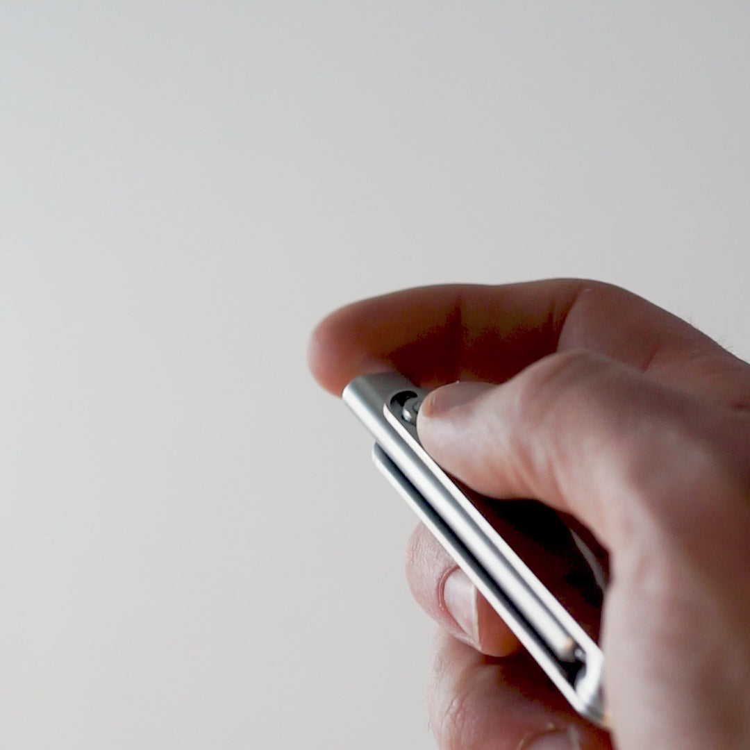 Pocket Pen transforms from compact to full-length with a simple flick of your finger. The folding mechanism, developed over more than a year, opens and closes with a clean, satisfying click and is built to last through daily use.