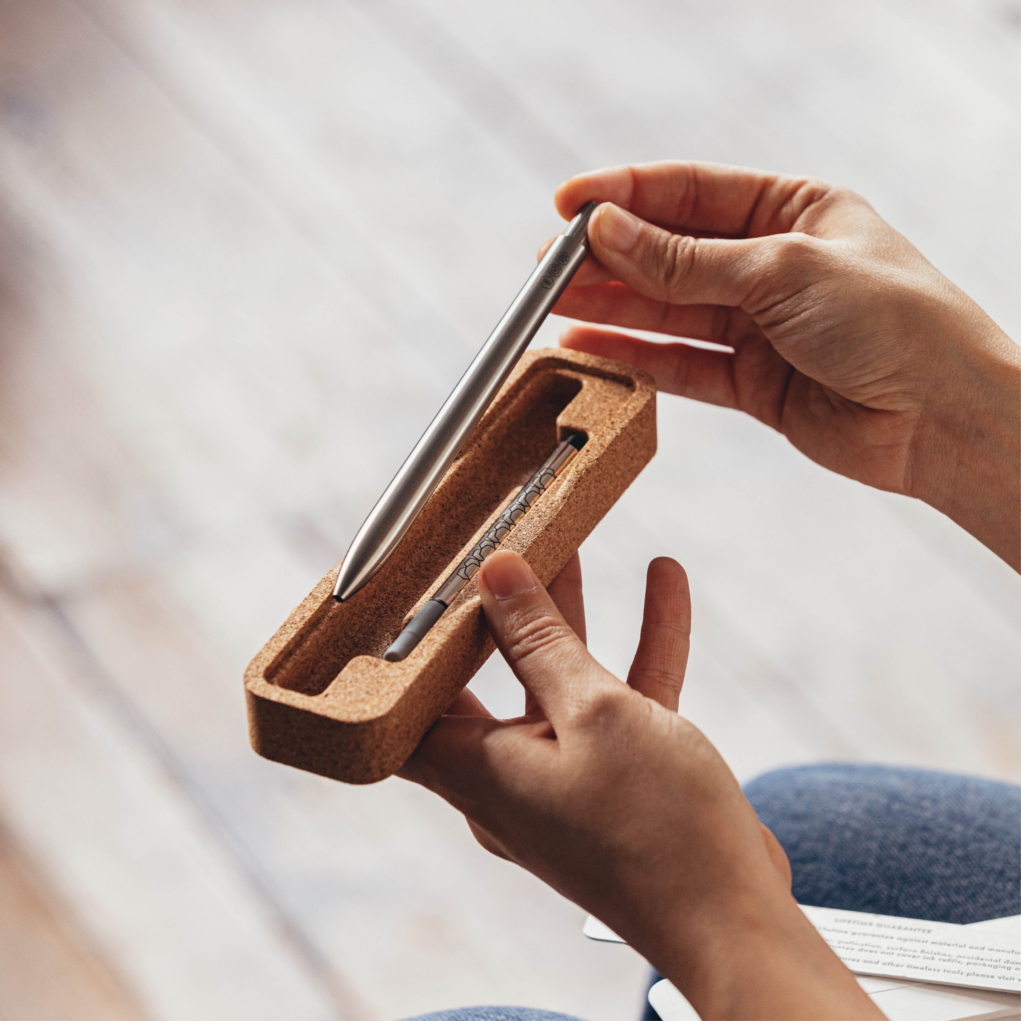 Built to last a lifetime, each pen comes with a lifetime warranty. The pen is wrapped inside a bespoke letterpress card and cork gift packaging using 100% sustainable materials.