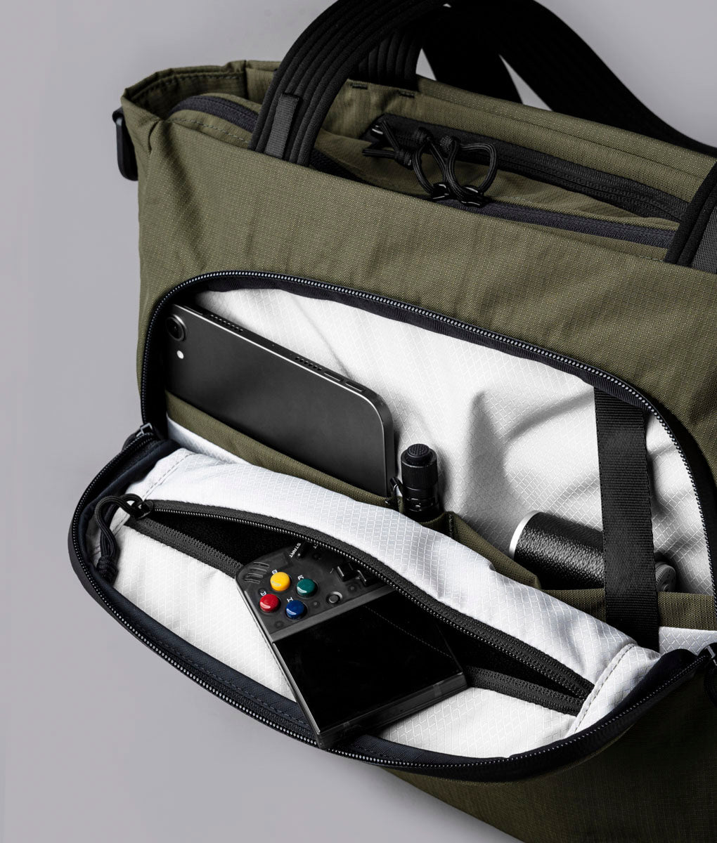 The Bravo Tote V2 is an evolution of a proven design. Lighter fabric reduces bulk, woven shoulder straps provide improved all-day comfort, and a smartly organized interior keeps a laptop, bottle, books, and essentials exactly where they are needed.